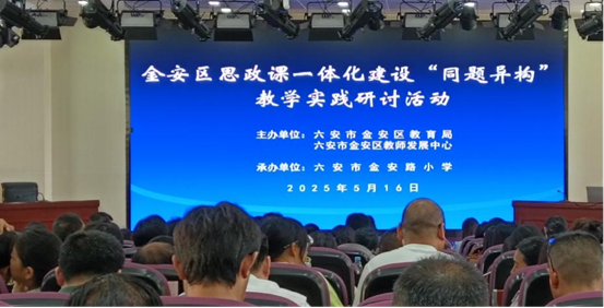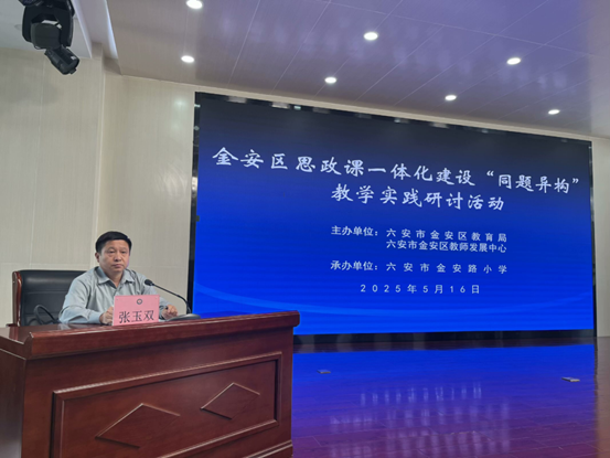 为深入学习贯彻落实习近平总书记关于教育的重要论述和思政课建设的重要指示批示精神,全面深化金安区大中小学思政课一体化建设实践。5月16日,金安区思政课一体化“同题异构”教学研讨活动在金安路小学报告厅成功举办。160余位来自全区各学段的思政课教师、学校党组织分管负责同志齐聚一堂,通过多维度教学展示与深度研讨,共同探索思政教育改革创新与育人实效的深度融合路径。区委教育工委委员、区教育局副局长张玉双主持本次研讨活动并作总结讲话。