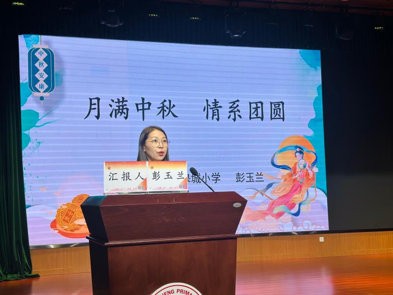 第二环节是说课展示。首先分享的是来自六安市皋城小学的彭玉兰老师二年级上册《团团圆圆过中秋》的说课活动。彭老师以传统节日为切入点,结合低年级学生的认知特点,进行了巧妙的设计。说课中关注学生的参与度和反应,分享,到知识讲解中的月饼制作体验,再到情感升华时的家庭团圆感悟,每一个环节都紧密围绕教学目标,注重培养学生的文化认同感和家庭观念。通过“听一听、说一说、演一演、做一做”等一系列活动,在真实的节日情境中感受中秋的氛围,在合作探究中理解习俗背后的文化,充分展现了如何将道德与法治教育融入趣味活动中。