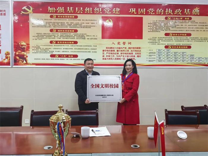 最后,王成龙代表相关部门为六安市人民路小学颁发“全国文明校园”奖牌。