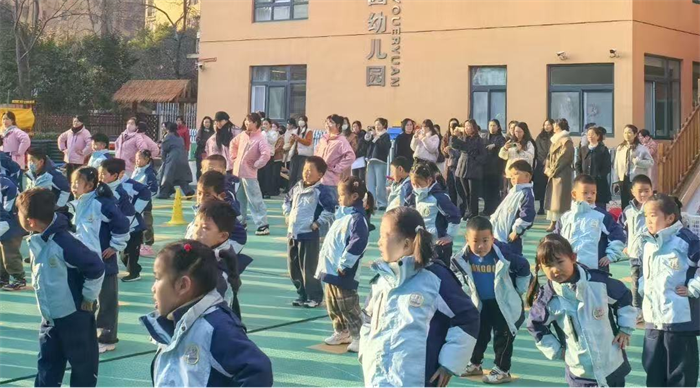 活动伊始,合肥市明光幼教集团总园长项红琼带领大家观摩晨间活动。晨间锻炼中,孩子们在阳光下奔跑,协作、挑战自我,一张张洋溢着欢笑的脸庞,定格了“在运动中成长”的活力画面,生动展现了合铁园一日活动的有序组织与童趣氛围。