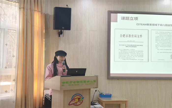 在课题研究经验分享环节,合肥市保利熙悦府幼儿园教学负责人王子娴以《幼儿园课题生成与申报实践路径》为题,结合实际案例讲解了课题研究的方法与技巧。合肥市合铁家园幼儿园教研组长李黎带来《以Steam为机 架益智玩具之舟 启幼儿创新之航》的分享,为幼儿园特色课程建设提供了新思路。