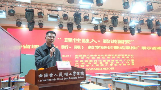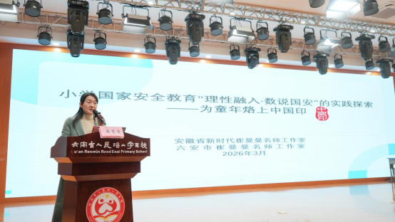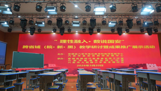 3月20日下午,安徽省新时代崔曼曼名师工作室、六安市崔曼曼名师工作室在六安市人民路小学安丰路校区举办“理性融入·数说国安”跨省域教学研讨暨成果推广展示活动。