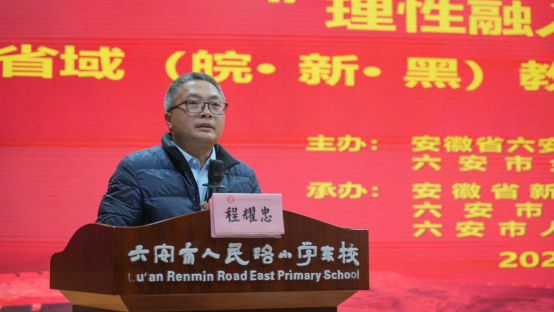 六安市人民路小学安丰路校区党支部书记、校长晁中致开幕辞,介绍了学校作为全国国防教育示范学校,秉持和谐教育办学理念,在崔曼曼名师工作室引领下,历经多年探索,实现国家安全教育与小学数学的理性融合。