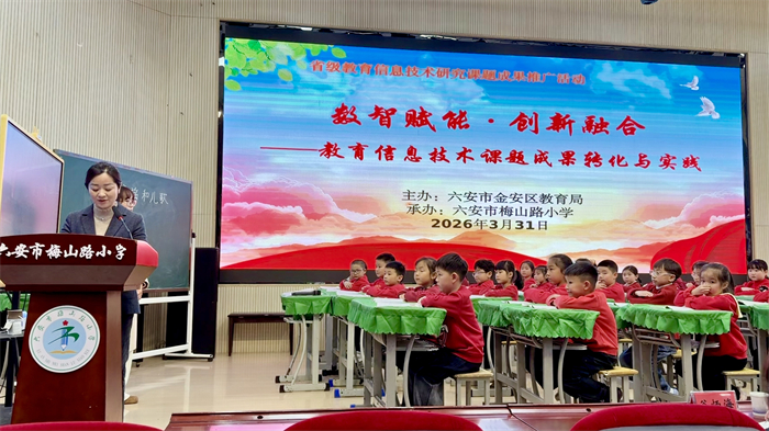 3月31日,由六安市金安区教育局主办、六安市梅山路小学承办的省级教育信息技术研究课题成果推广活动在该校报告厅举行。本次活动以“数智赋能·创新融合——教育信息技术课题成果转化与实践”为主题,创新采用“线上线下联动”模式,成果显著,影响深远。