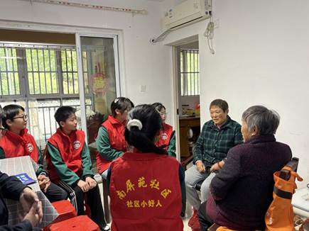 来自该校的20名高年级学生,身着红马甲,分为四组,深入社区开展志愿服务活动,以真挚的童心温暖着老人,以实际的行动传递着孝心。