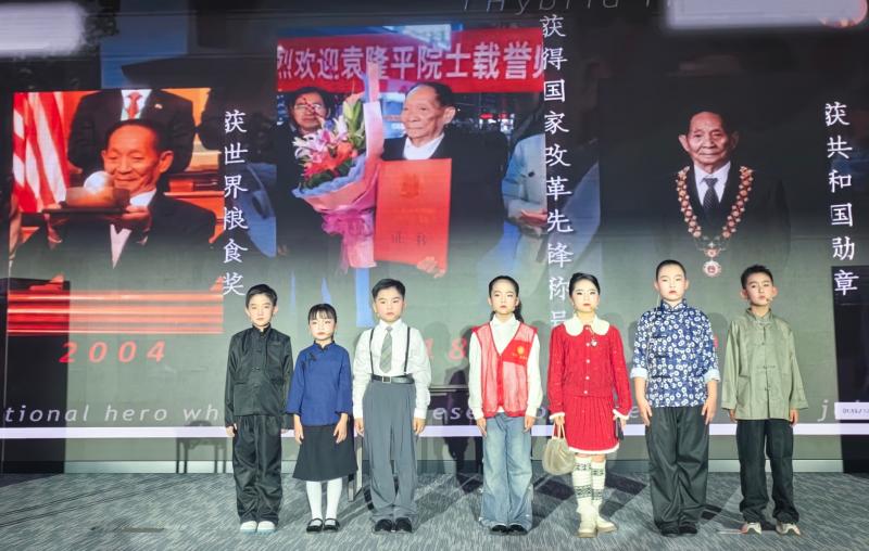 展演现场,六安市皋城小学的三(6)班的小演员们以生动的表演,还原了袁隆平院士在科研道路上的坚守与执着。舞台上,“袁隆平”的实验笔记、稻田场景的沉浸式布置,让“流量(科研数据)”与“稻浪(田野实践)”的碰撞具象化——既展现了科学家“把论文写在大地上”的实干精神,也让现场观众(含多位省级领导)感受到新时代少年儿童对科学精神的理解与传承。活动全程线上直播,我们的小演员们自信的表现,不仅收获了现场的掌声,更让“皋城小学科创力量”通过镜头传递到了全省!