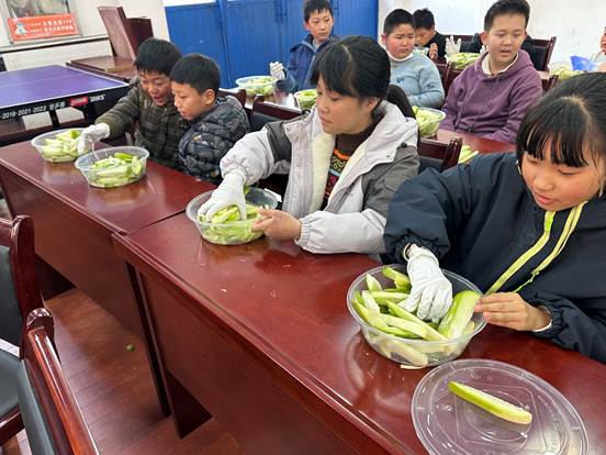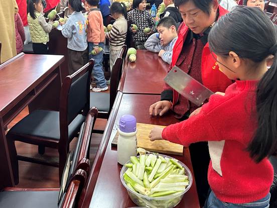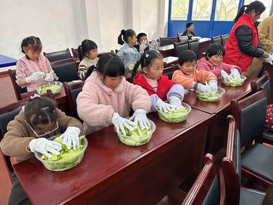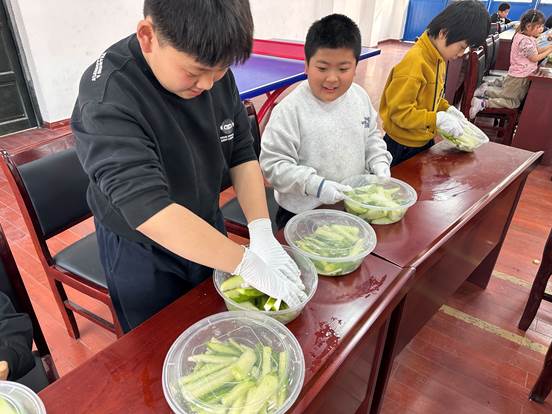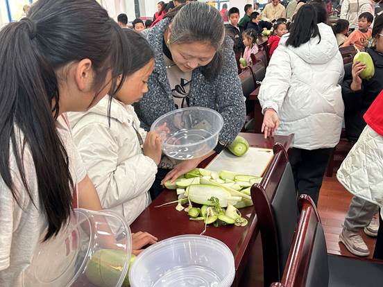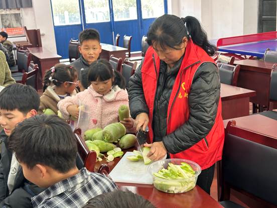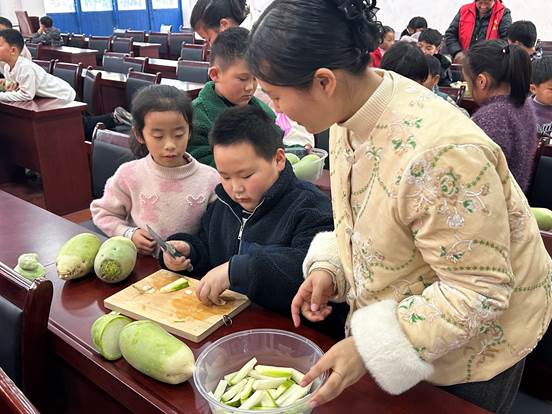 学校党支部书记、校长赵前山对各位家长和社区工作人员的到来表示热烈欢迎,对关心学校发展和支持学校工作的各位代表表示感谢。随着赵校长的一声令下,早已跃跃欲试的孩子们立刻行动起来,切菜声、欢笑声顷刻间汇成冬日里最蓬勃的劳动交响乐。