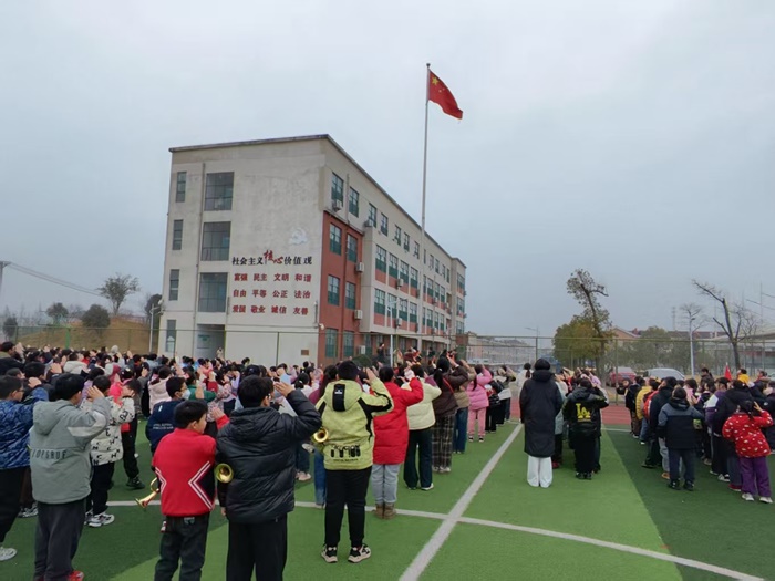 1月12日上午,金安区张店镇第一小学举行“复习有方法,期末展风采”主题升旗仪式。全体师生齐聚操场,在庄严的氛围中共同开启期末冲刺的新征程。