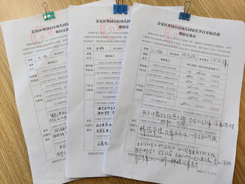 为搭建家园沟通的桥梁,让家长直观了解孩子在园的日常学习、生活情况,2026年1月13日上午,金安区枣园小区幼儿园开展了家长半日开放活动。家长们应邀走进校园,近距离感受孩子们在园的快乐时光。