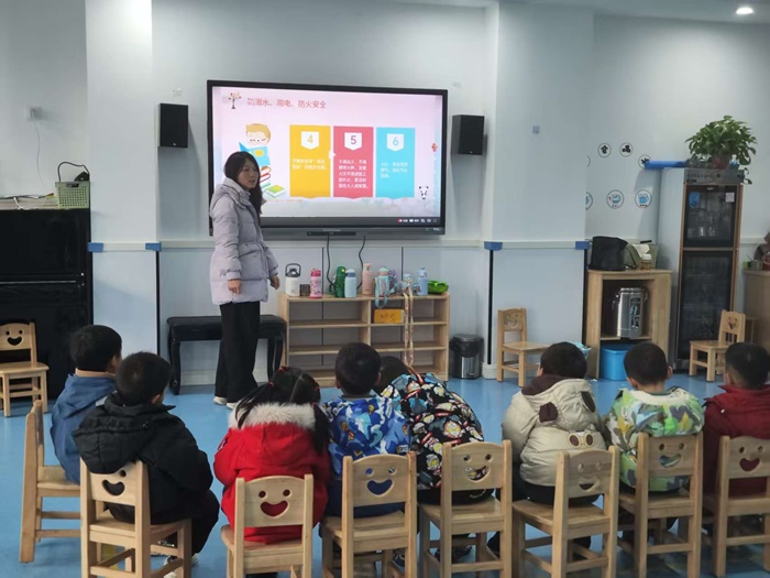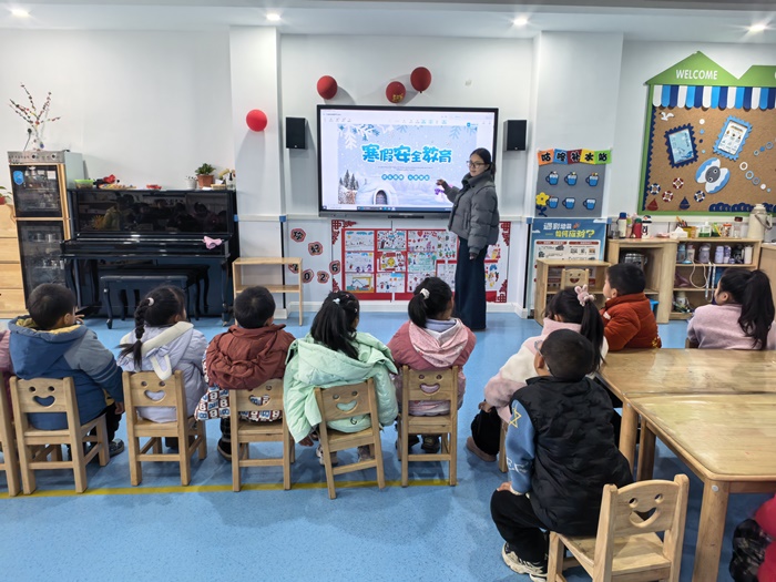 各班级教师结合幼儿年龄特点和认知水平,通过情景模拟、故事讲述、动画观看、趣味游戏等多种形式,围绕寒假安全重点内容展开教学。活动中,教师重点讲解了交通安全,教育幼儿遵守交通规则,不横穿马路、不乘坐无牌无证车辆;消防安全,提醒幼儿不玩火、不随意触碰电器,了解火灾逃生基本常识;居家安全,引导幼儿不随意给陌生人开门、不玩危险物品、注意用电用气安全;饮食安全,告知幼儿不吃生冷变质食物、不暴饮暴食;防溺水安全,强调远离冰面、不私自到水边玩耍等。同时,教师还针对烟花爆竹安全、网络安全等内容进行了补充教育。