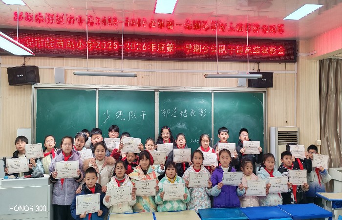 为发挥少先队干部模范带头作用,激励队员向上担当,学校少先队大队部开展期末队干表彰活动。经班级推荐、大队部考核,评选出优秀大队长、中队长、小队长等一批表现突出的优秀队干。