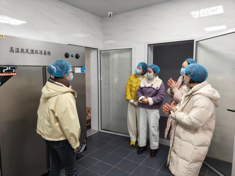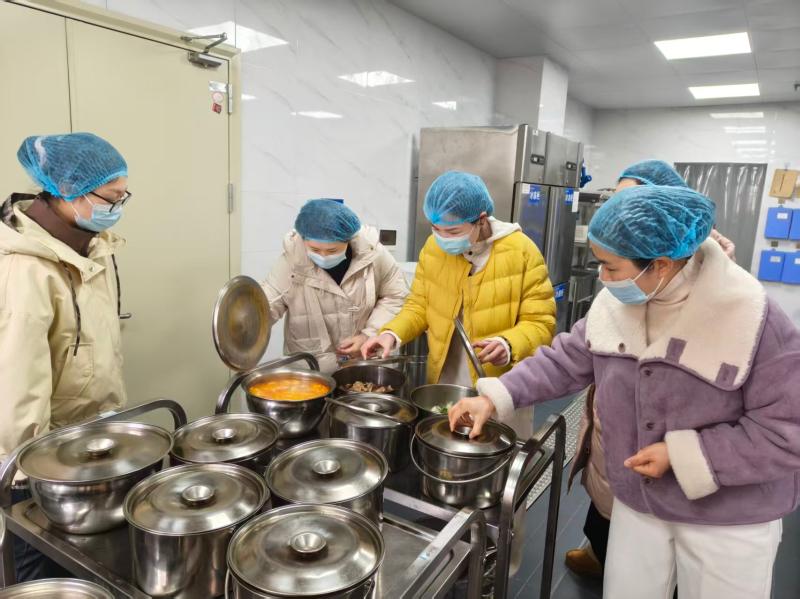 活动伊始,膳食监督家长委员会成员在食堂管理员吴佳仪老师的带领下,实地探访幼儿园食堂。从原料储藏间、清洗切配区、消毒区到烹饪区,家长代表们细致查看了食品留样规范、刀具分色摆放等关键环节,直观了解餐食制作全流程。随后,家长代表进入班级参与陪餐,亲身品鉴幼儿餐食,对餐食的色香搭配与营养均衡给予充分肯定。