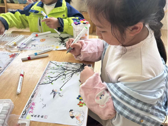 孩子们拿起画笔,用多彩的颜料描绘清明的春日盛景:抽芽的柳枝、归来的燕子、盛放的春花……一幅幅充满生机的画作,展现了孩子们对春天的喜爱,诠释了清明“踏青迎春”的美好内涵。