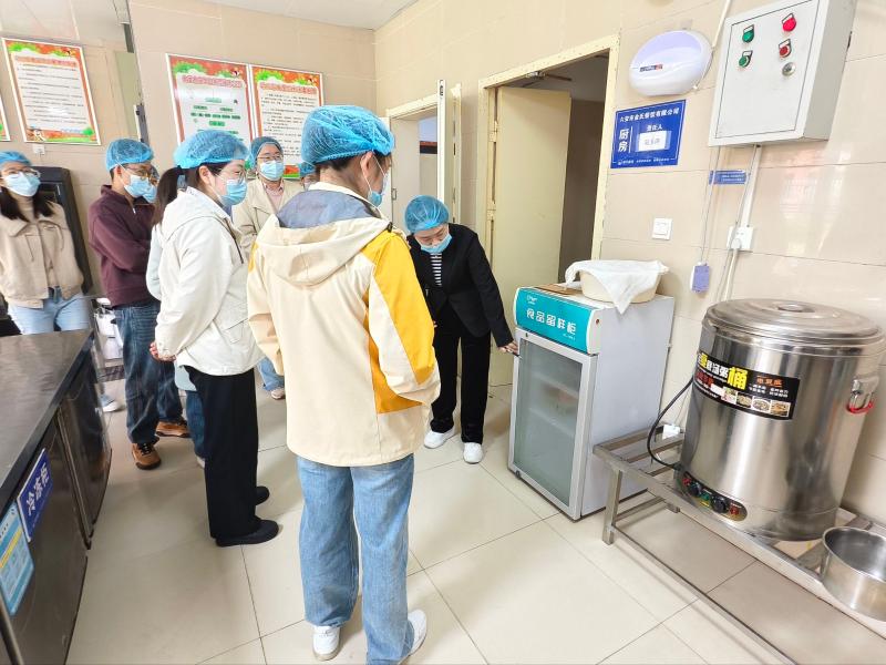 座谈会后,在食堂负责人的带领下,家长们实地参观食堂核心区域,依次查看食材储存区、清洗消毒区、加工操作间及食品留样专区,详细了解食材采购验收、清洗加工、餐具消毒、食品48小时留样等全流程管理规范。