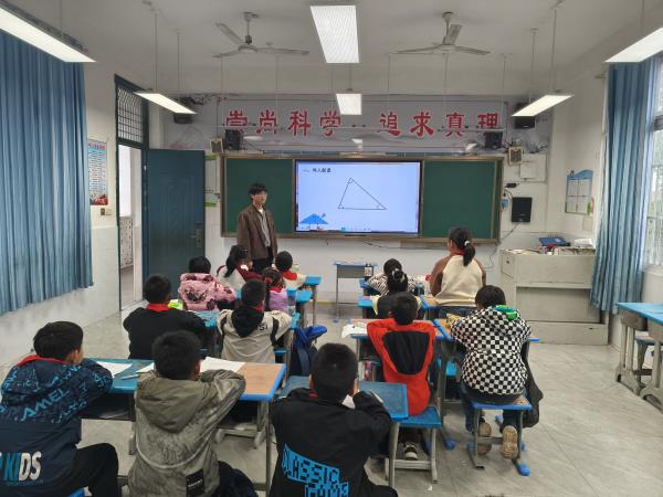 四年级孙宏伟的《三角形的内角和》则凸显探究本质。教师以平角转化为依托,引导学生建立“三角形内角和等于180°”的核心认知,通过“量一量、折一折”等动手操作,实现多元验证。学生在自主探究中动手实践、深度思考,感受数学逻辑的严谨与魅力,真正做到“做中学、玩中学”。