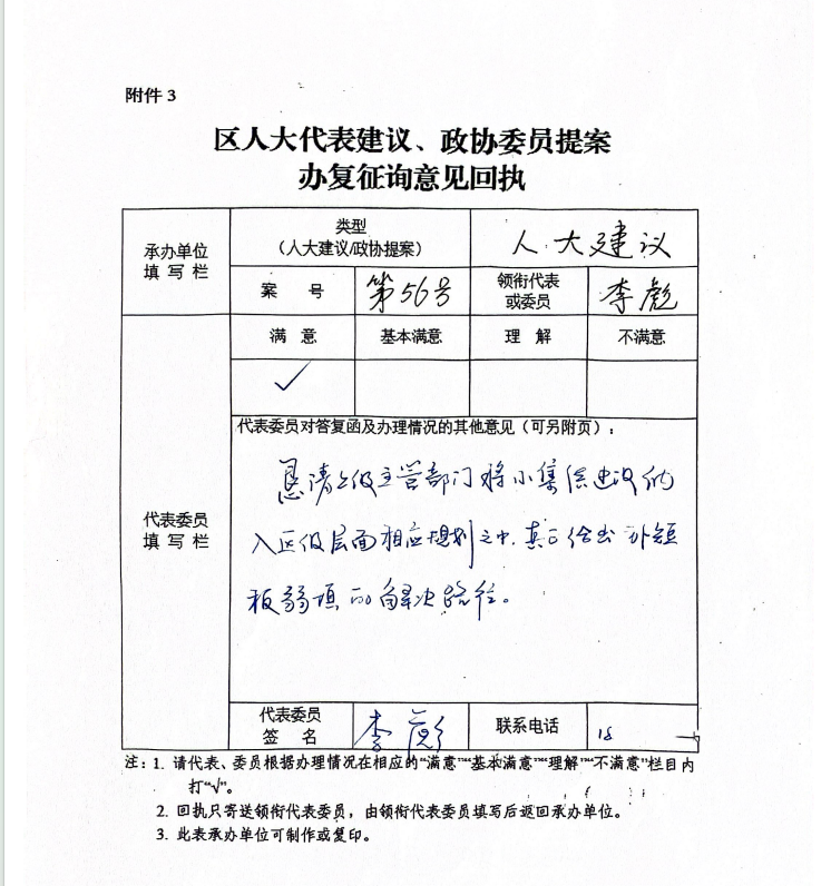 关于金安区第六届人民代表大会第四次会议第56号建议的答复及满意度签字表