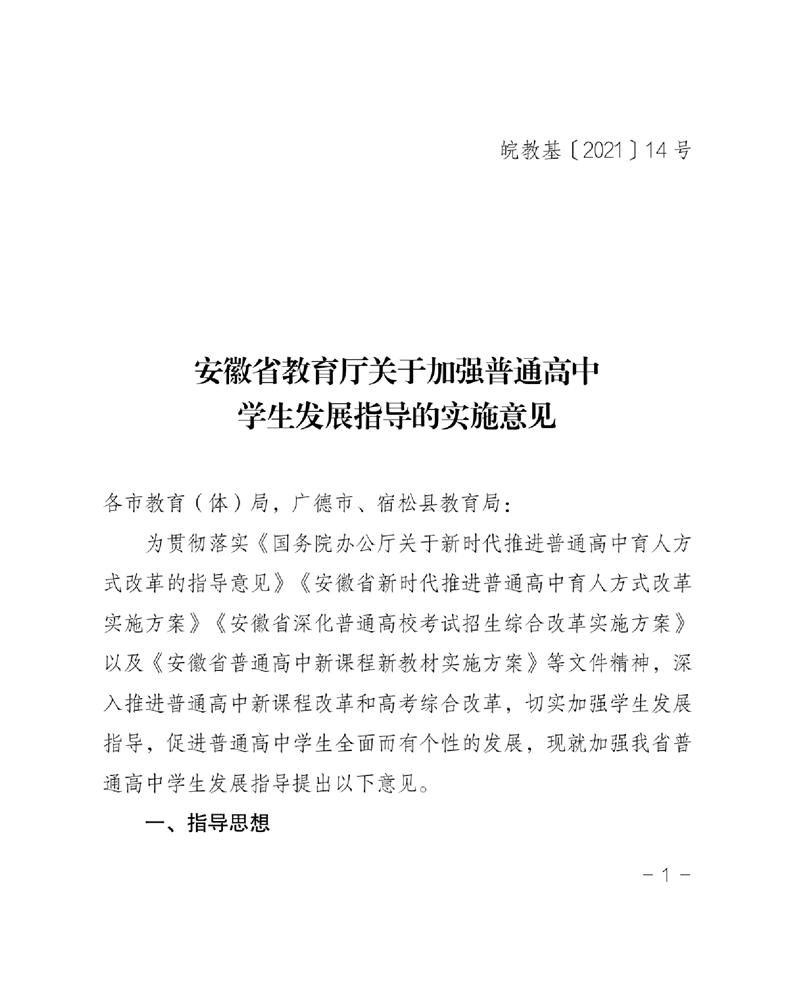 【政策文件】安徽省教育厅关于加强普通高中学生发展指导的实施意见
