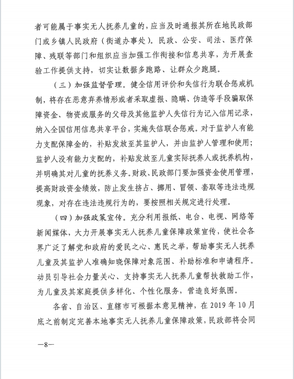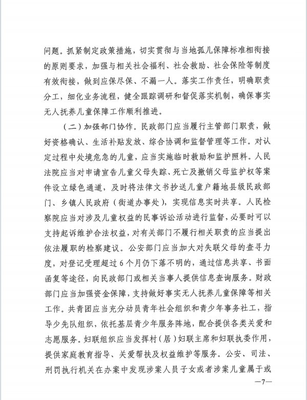 民政部等12部门事实无人抚养儿童保障工作的意见