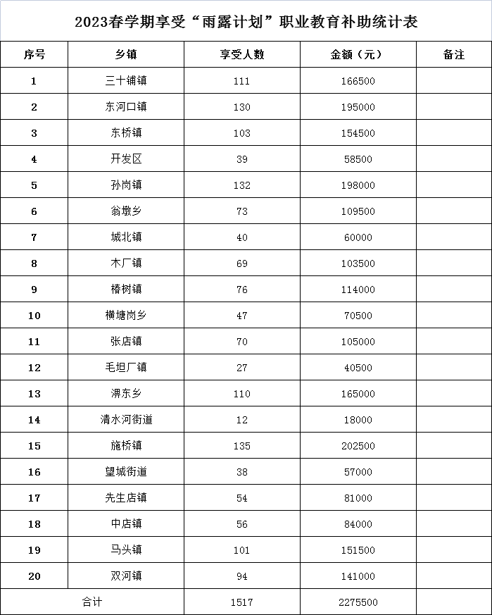 【资助情况】金安区三十铺镇转发金安区2023年春季学期拟享受“雨露计划”统计表(含三十铺镇)