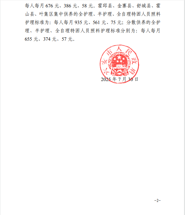 【标准】六安市人民政府关于调整2025年度城乡居民最低生活保障标准和特困人员供养标准的通知