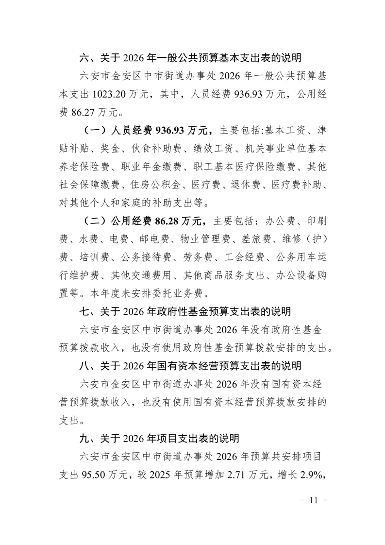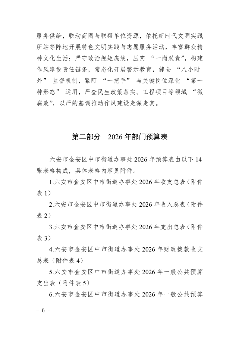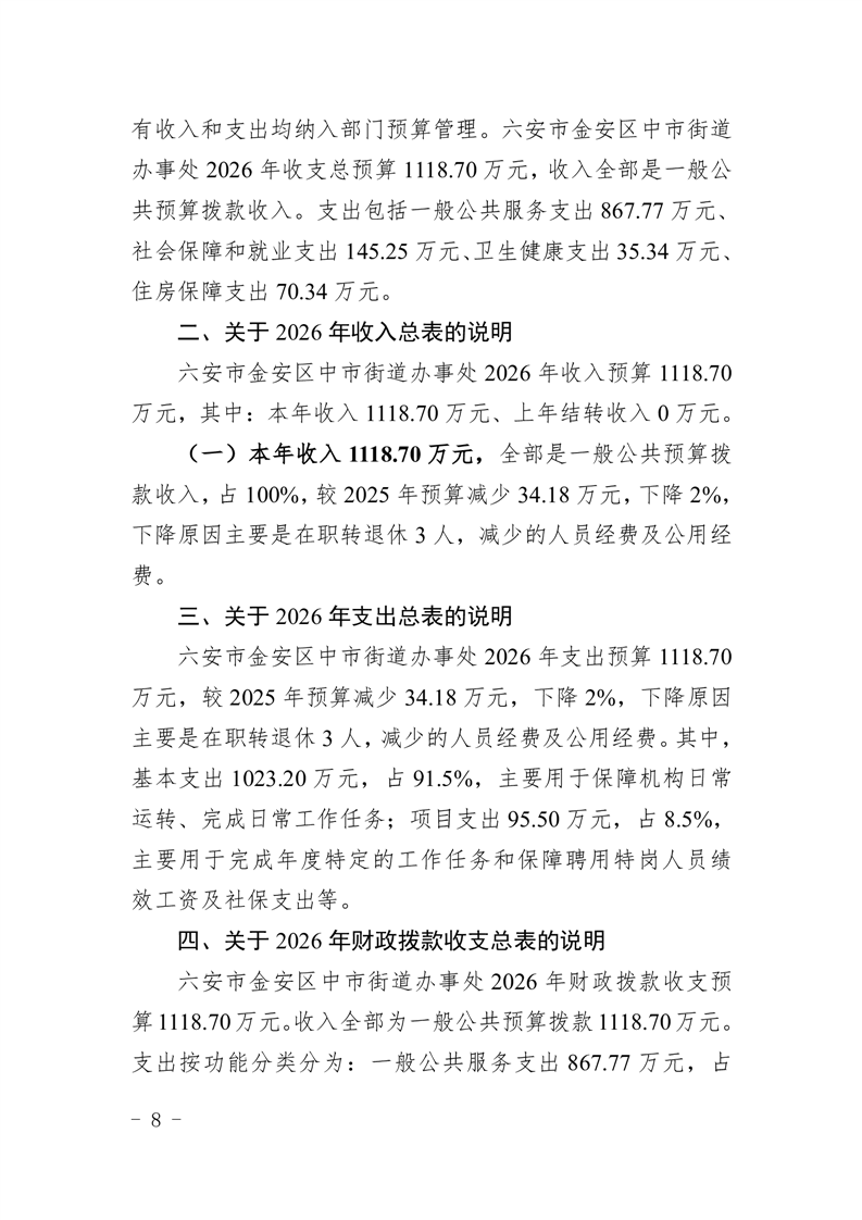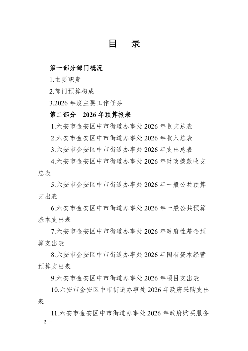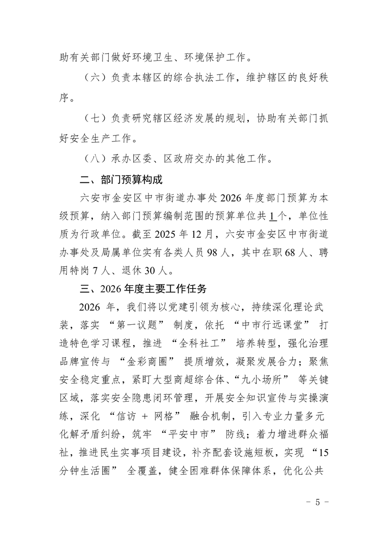 六安市金安区中市街道办事处2026年部门预算公开