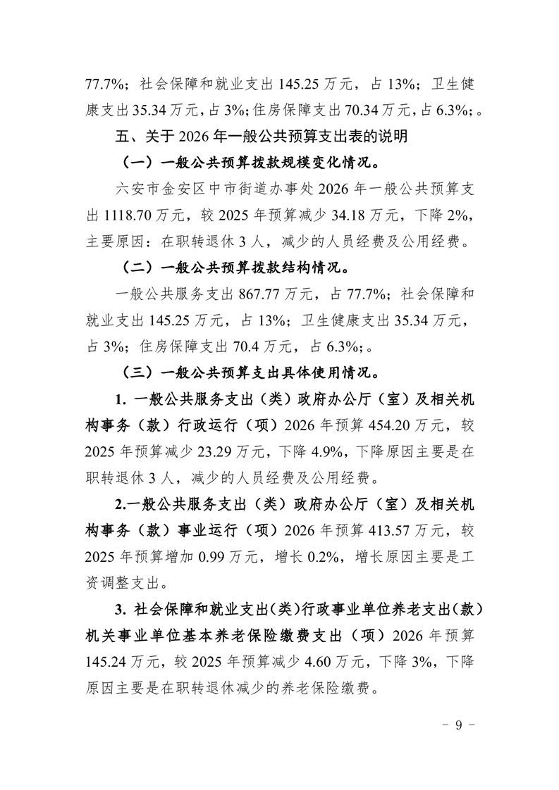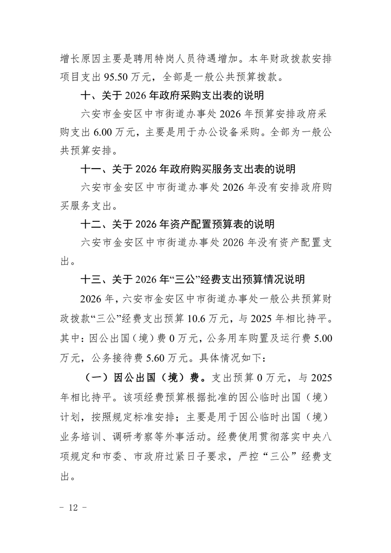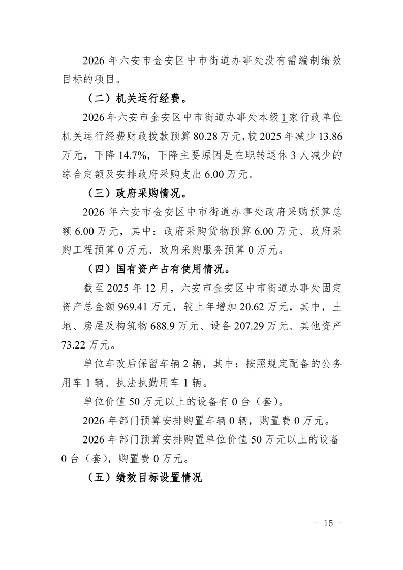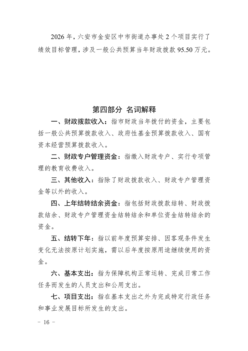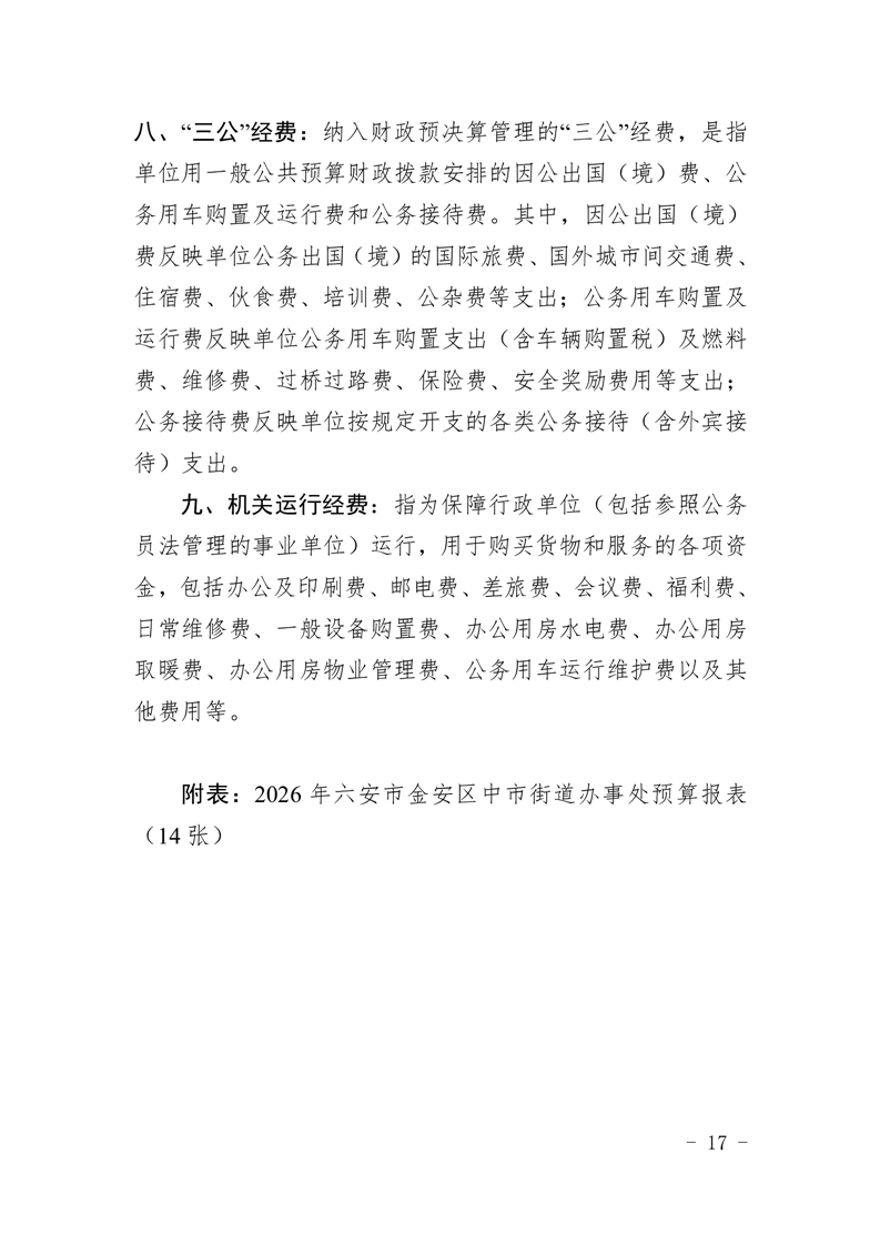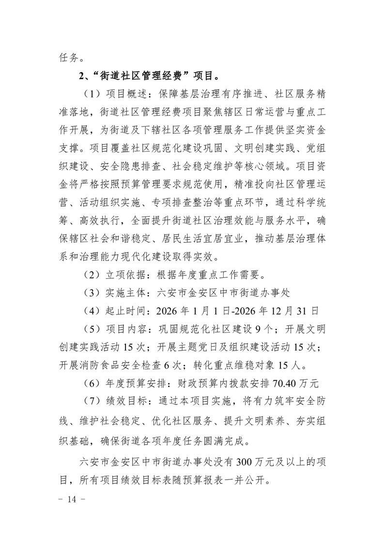 六安市金安区中市街道办事处2026年部门预算公开