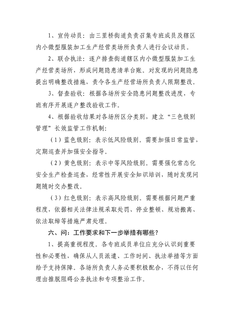 【政策问答】《三里桥街道关于开展小微型服装加工生产经营类场所安全生产风险隐患集中整治专项行动的通知》政策解读.pdf