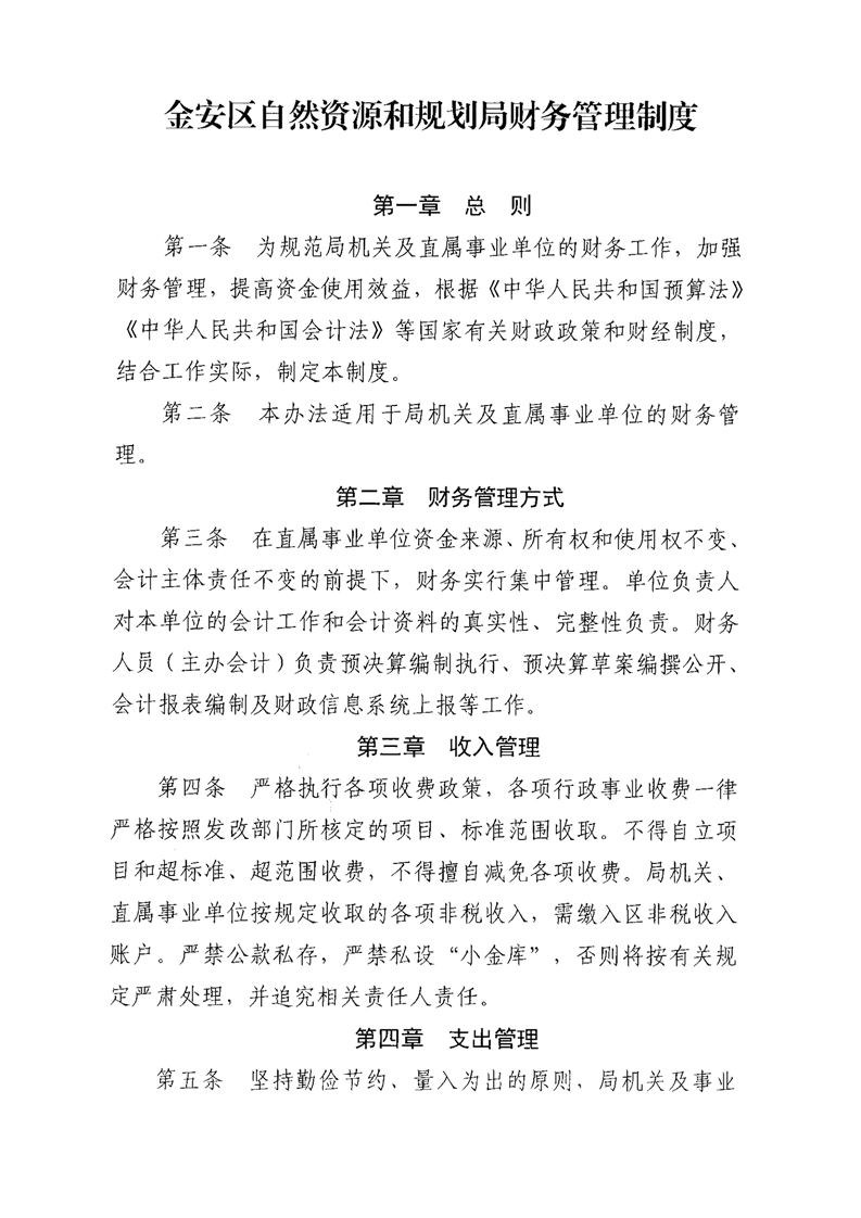 六安市金安区自然资源和规划局财务管理制度