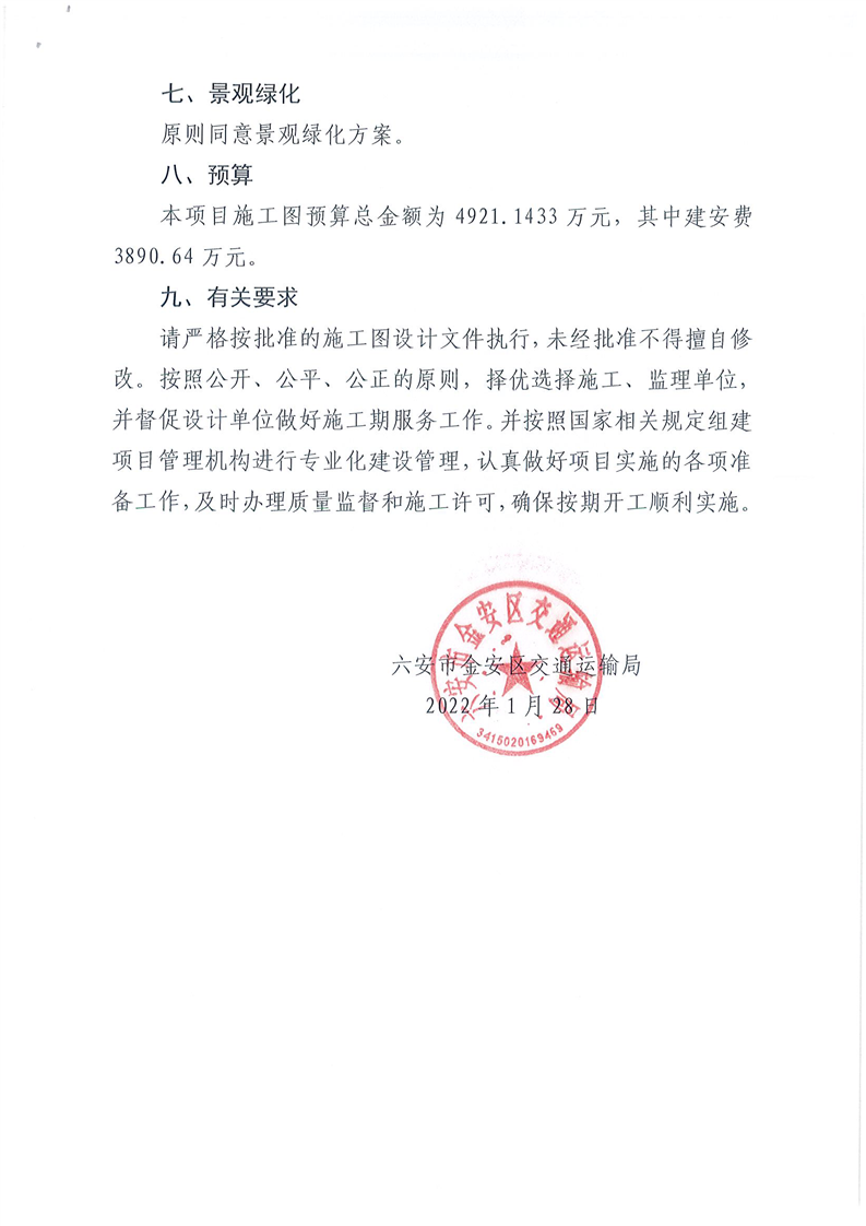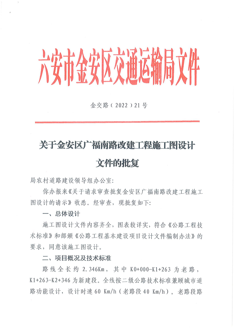 关于金安区广福南路改建工程施工图设计文件的批复