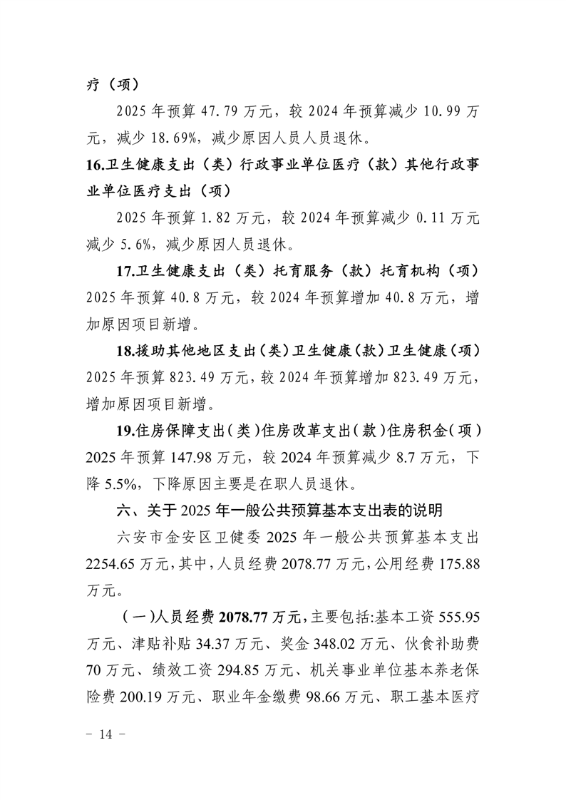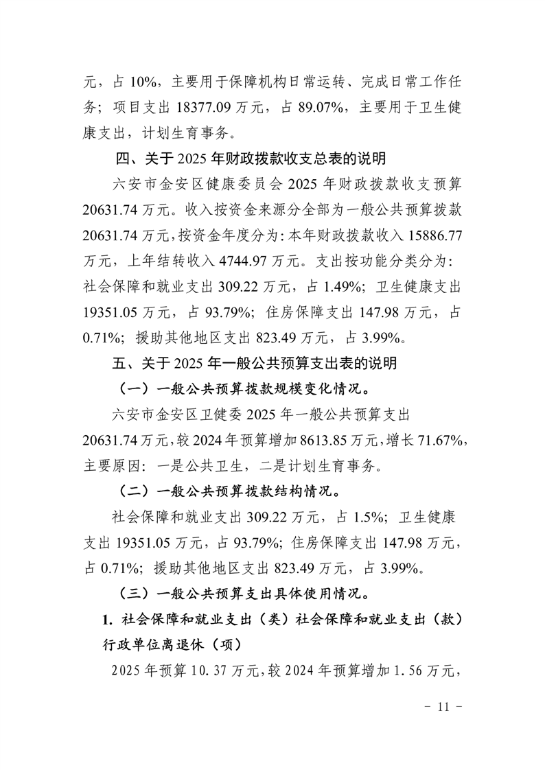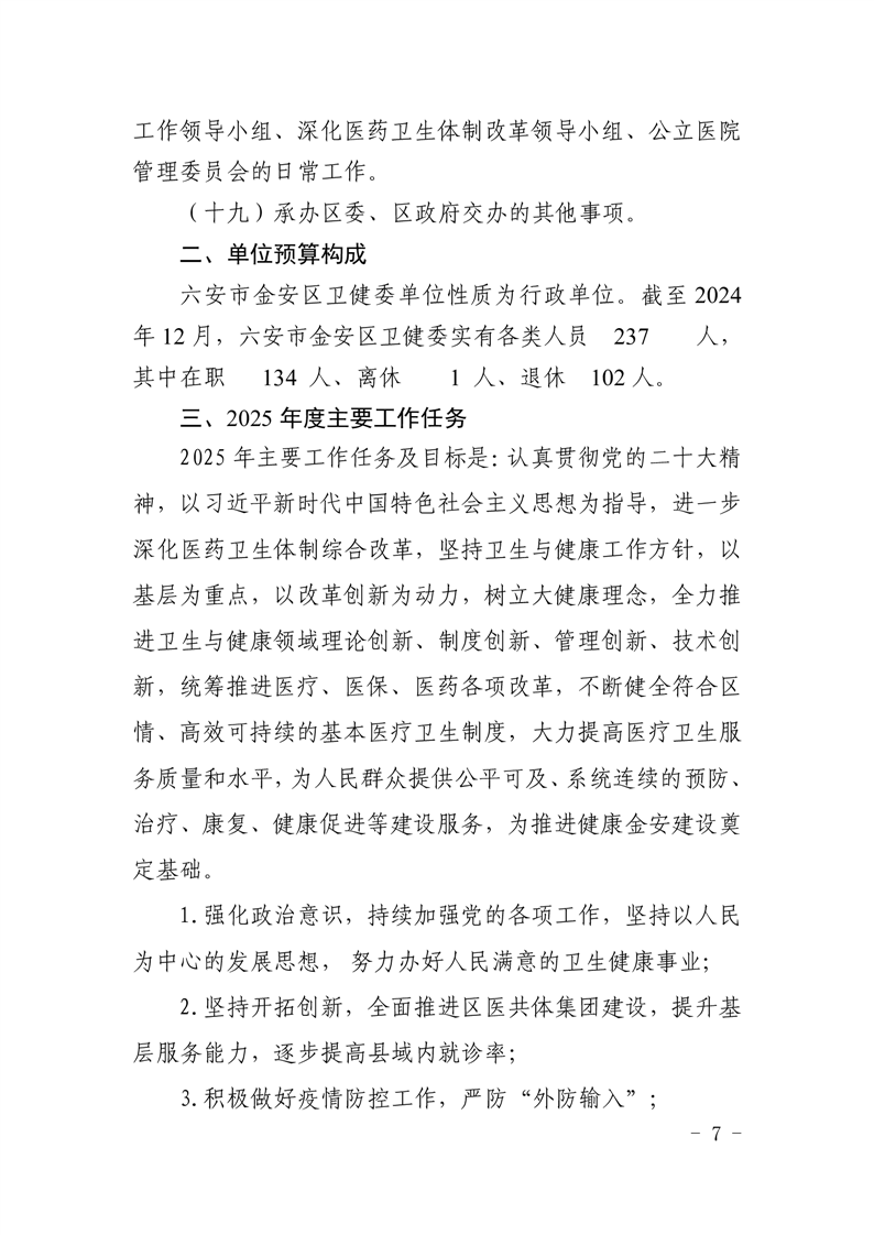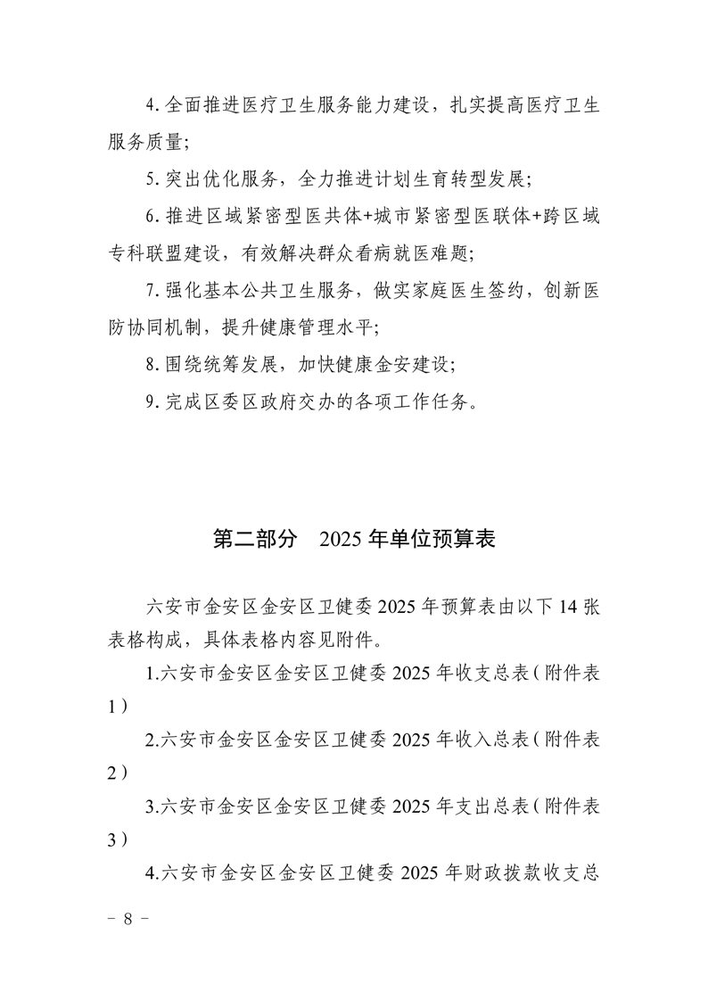 六安市金安区金安区卫健委(本级)2025年单位预算