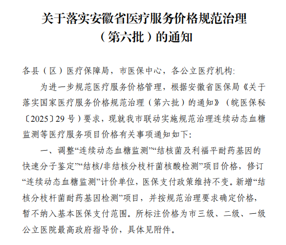 【重要商品服务价格】【医疗服务目录】关于落实安徽省医疗服务价格规范治理(第六批)的通知