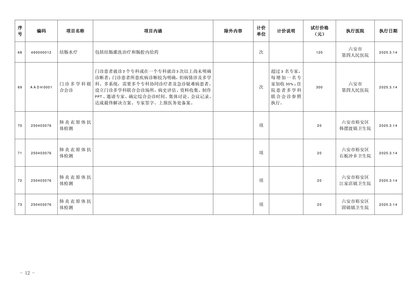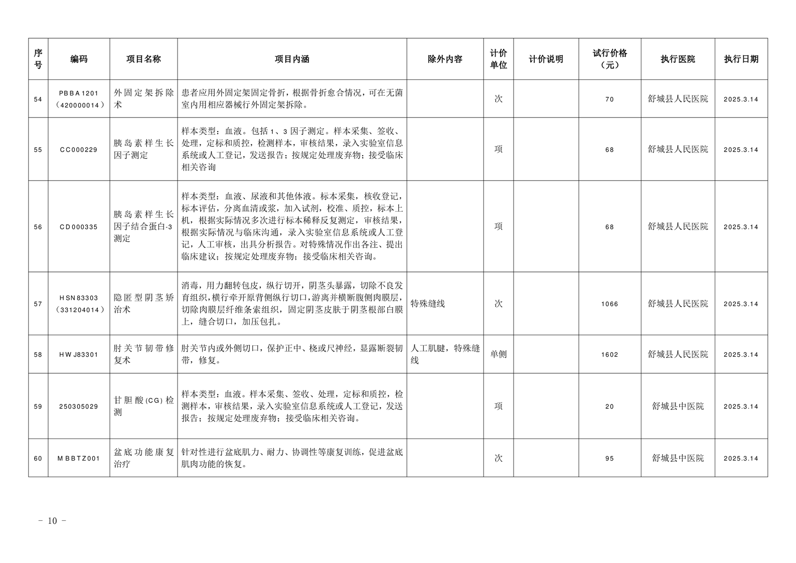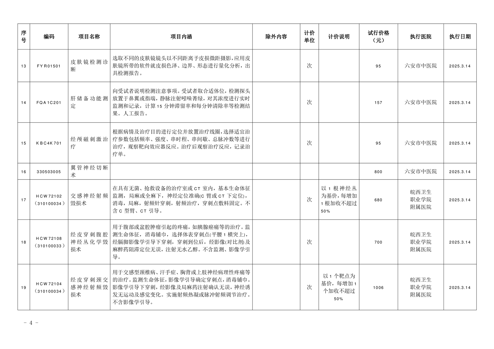 【重要商品服务价格】【医疗服务】2025年第一批六安市公立医疗机构市场调节价项目试行价格