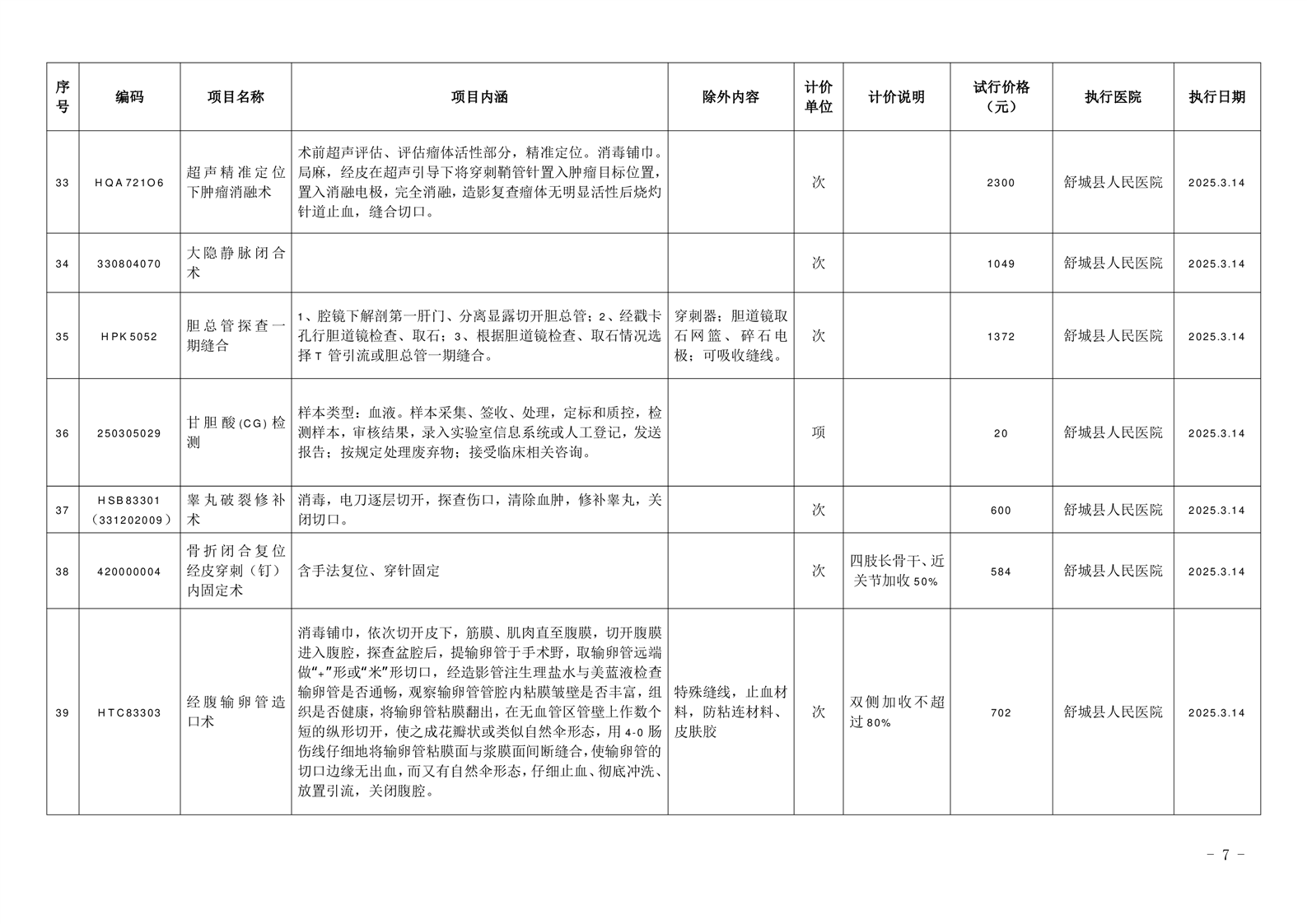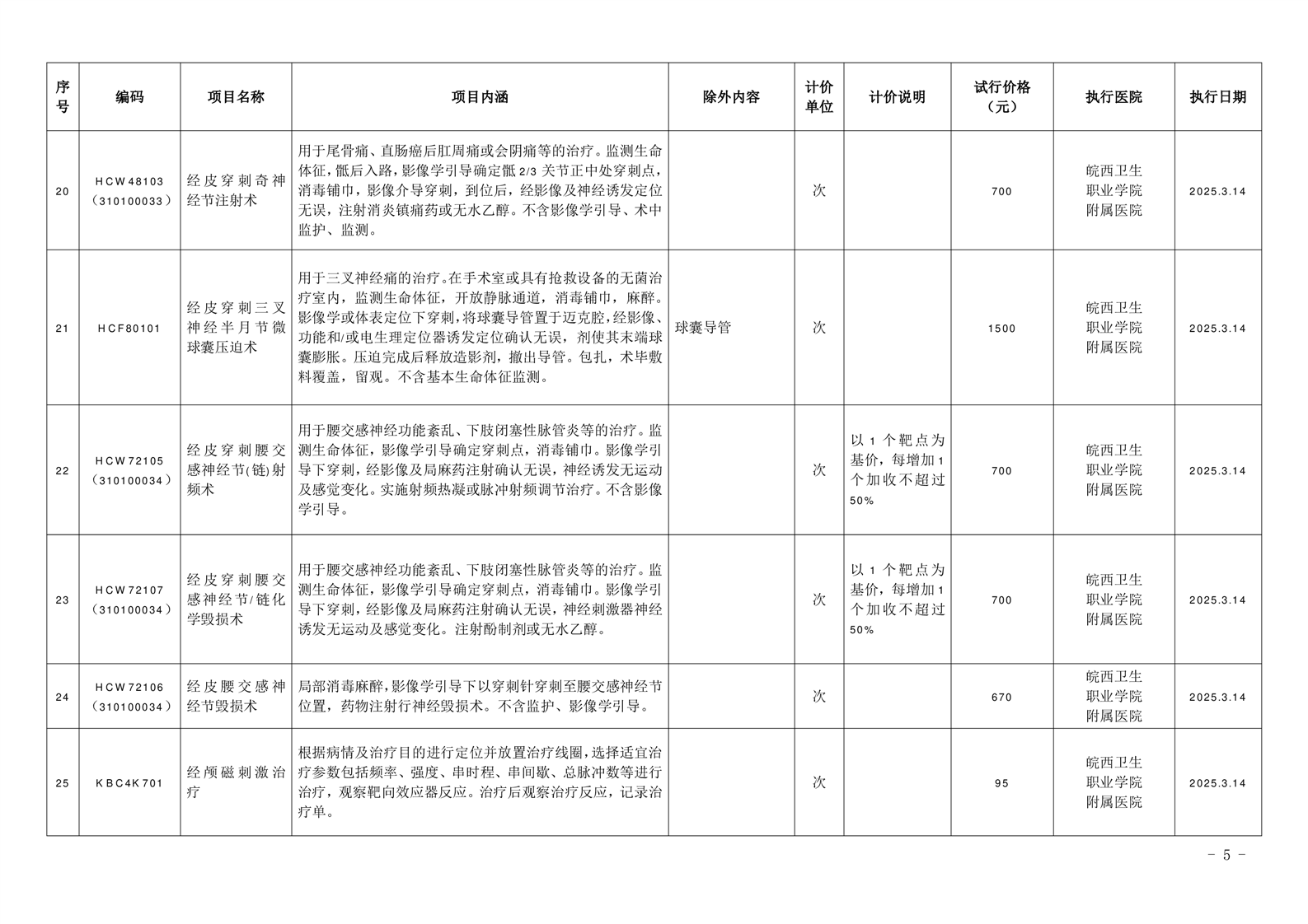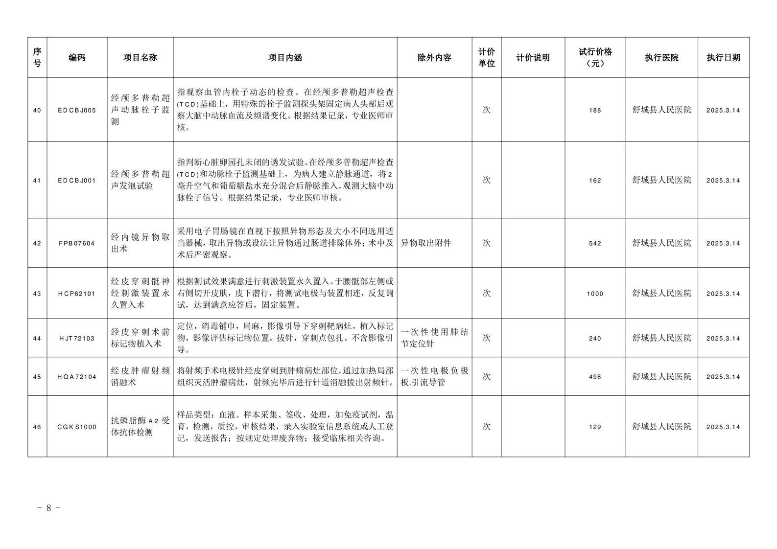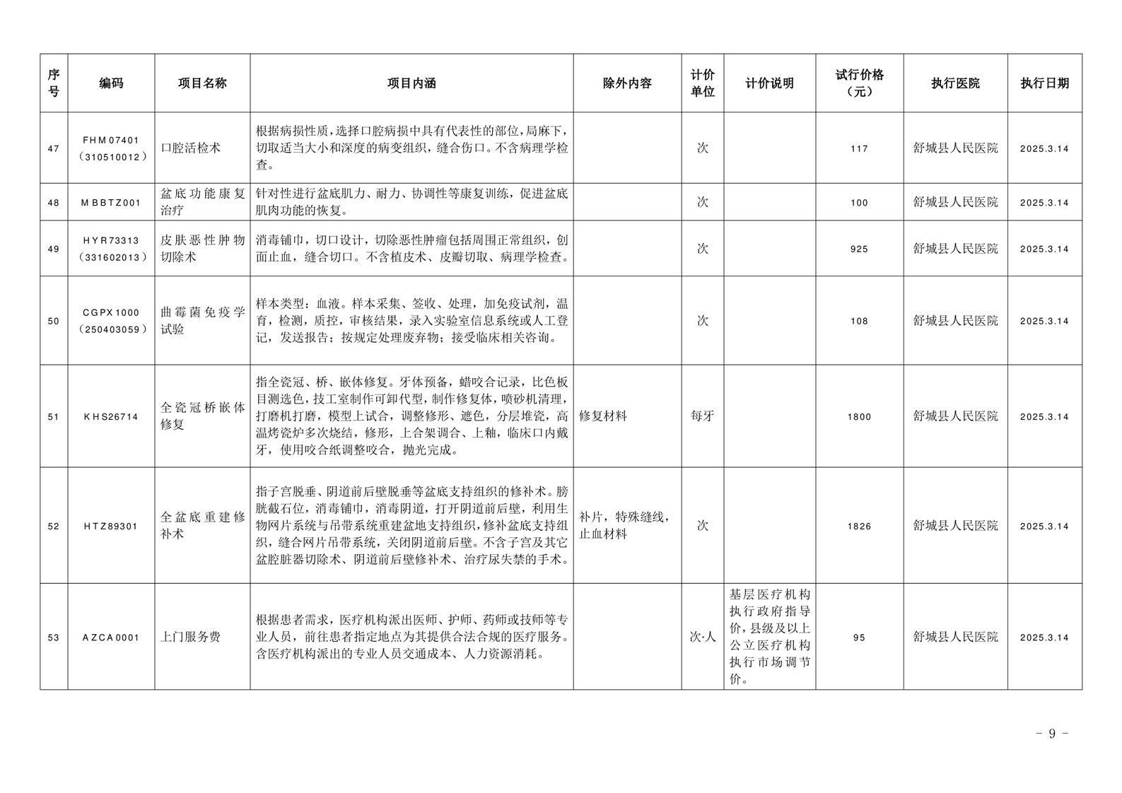 【重要商品服务价格】【医疗服务】2025年第一批六安市公立医疗机构市场调节价项目试行价格