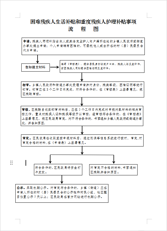金安区困难残疾人生活补贴和重度残疾人护理补贴事项流程图