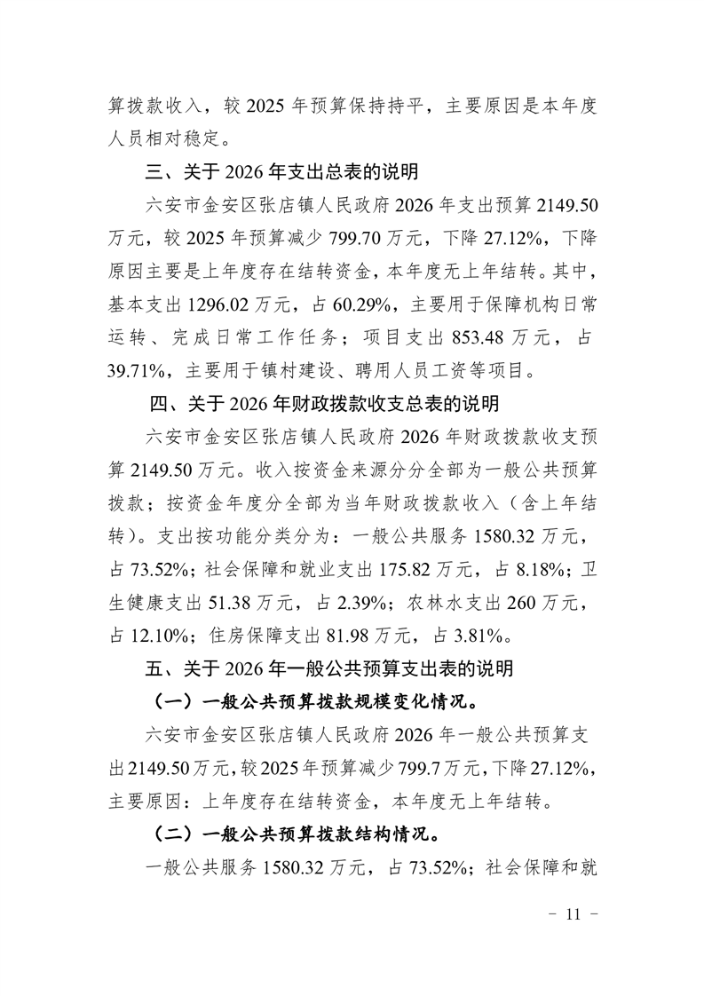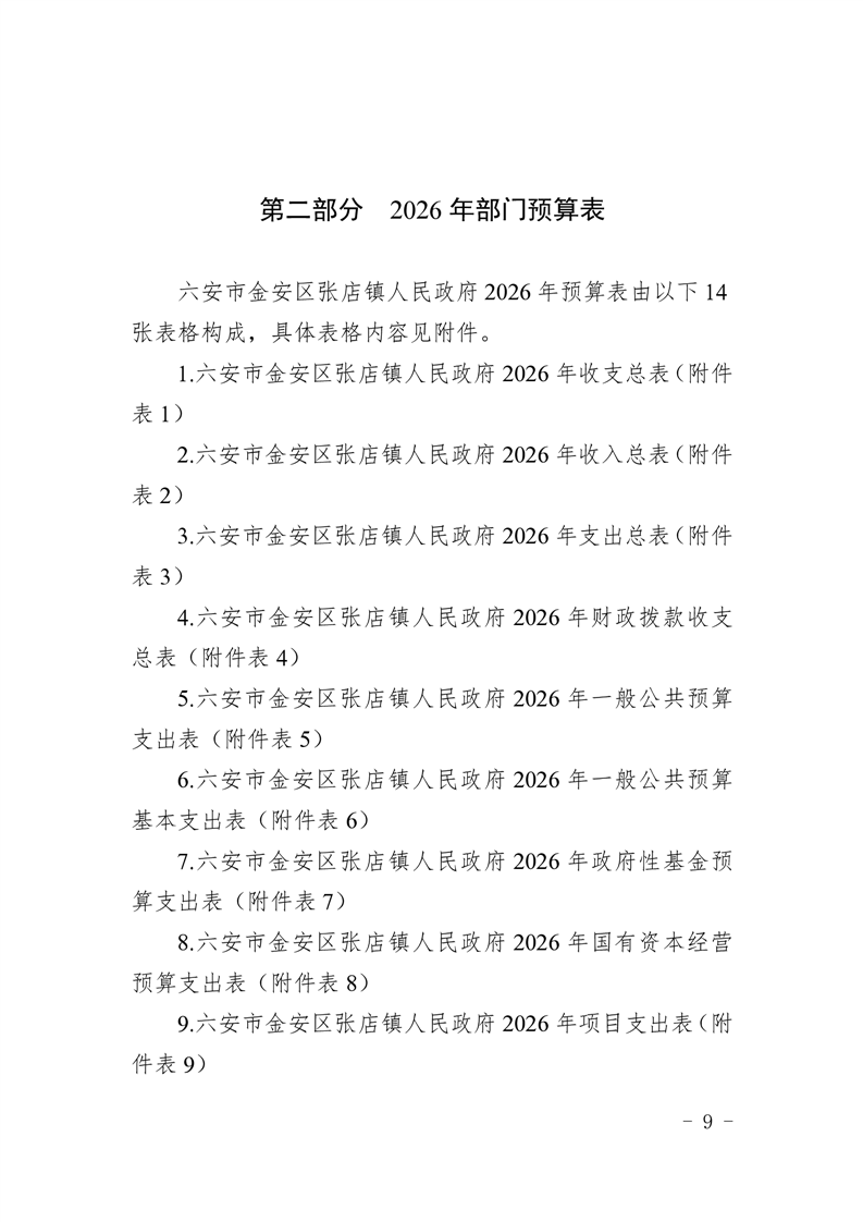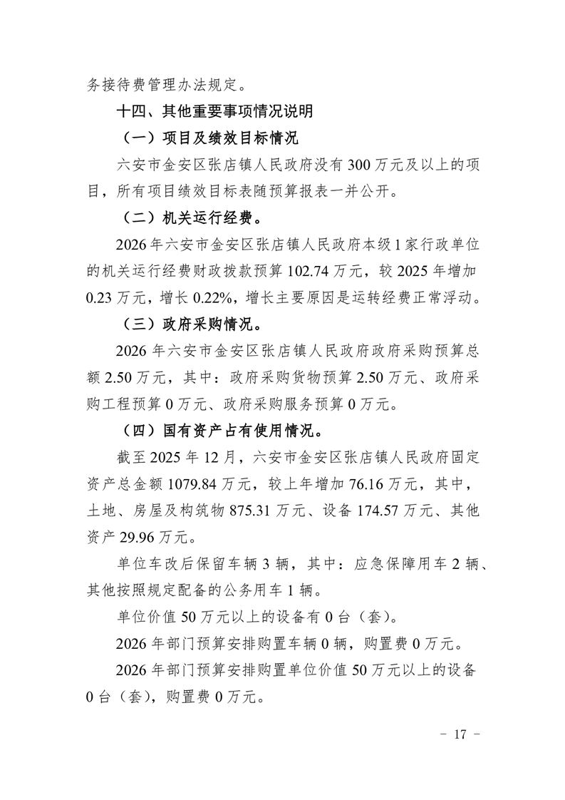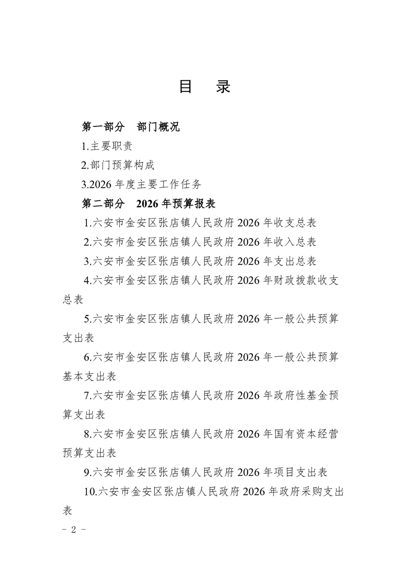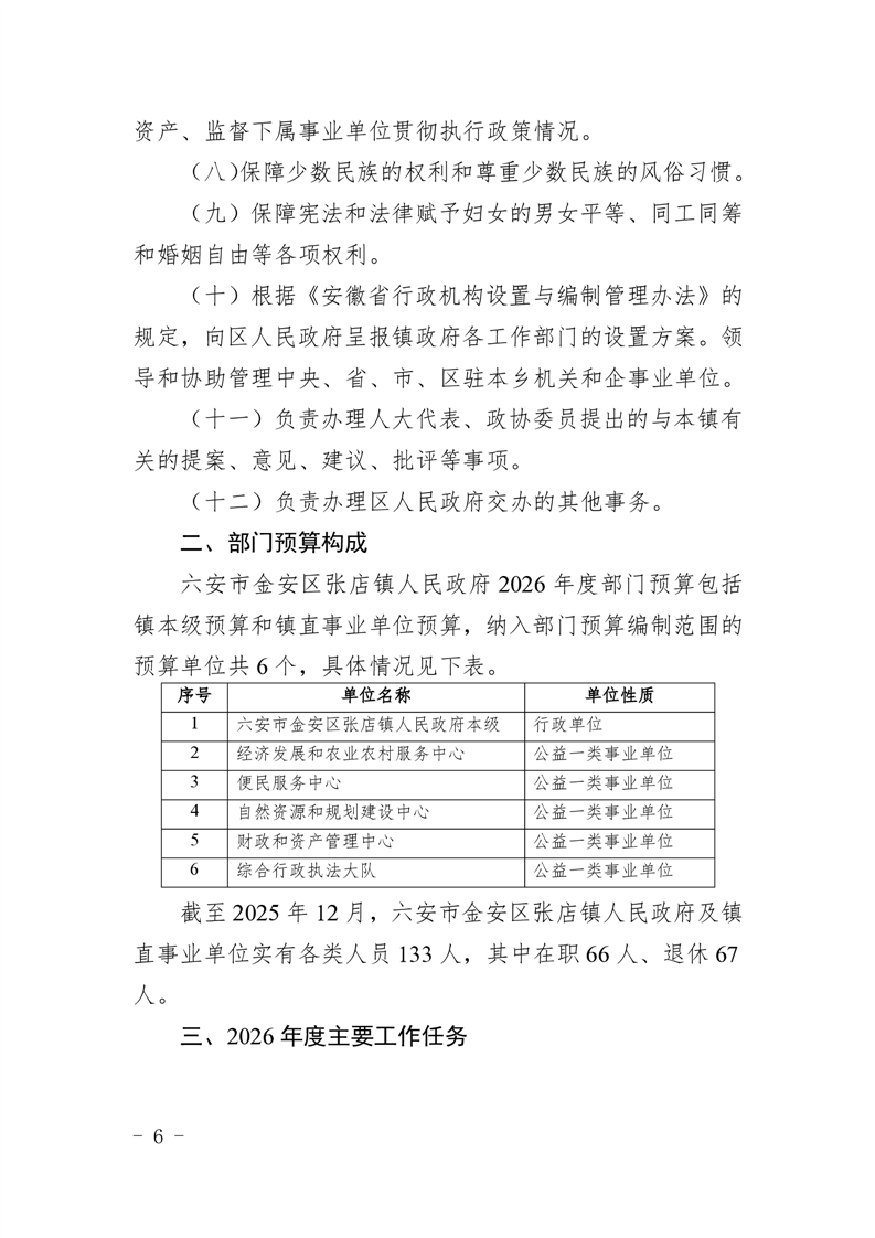 六安市金安区张店镇人民政府2026年部门预算公开