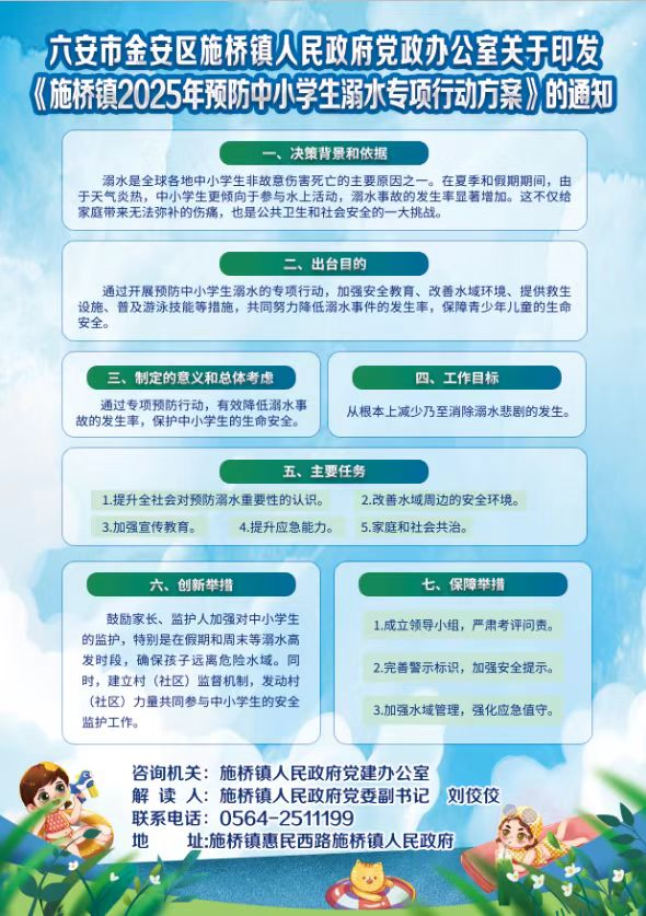 【政策图解】六安市金安区施桥镇人民政府党政办公室关于印发《施桥镇2025年预防中小学生溺水专项行动方案》的通知