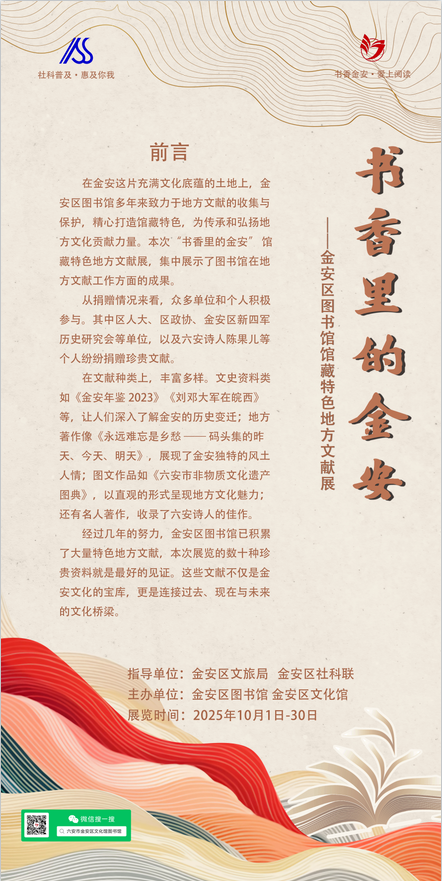 经过几年的努力,金安区图书馆已积累了大量特色地方文献,本次展览的数十种珍贵资料就是最好的见证。这些文献不仅是金安文化的宝库,更是连接过去、现在与未来的文化桥梁。