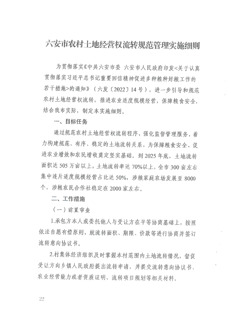 【政策文件】金安区木厂镇关于转发《六安市农村土地经营权流转规范管理实施细则》的通知