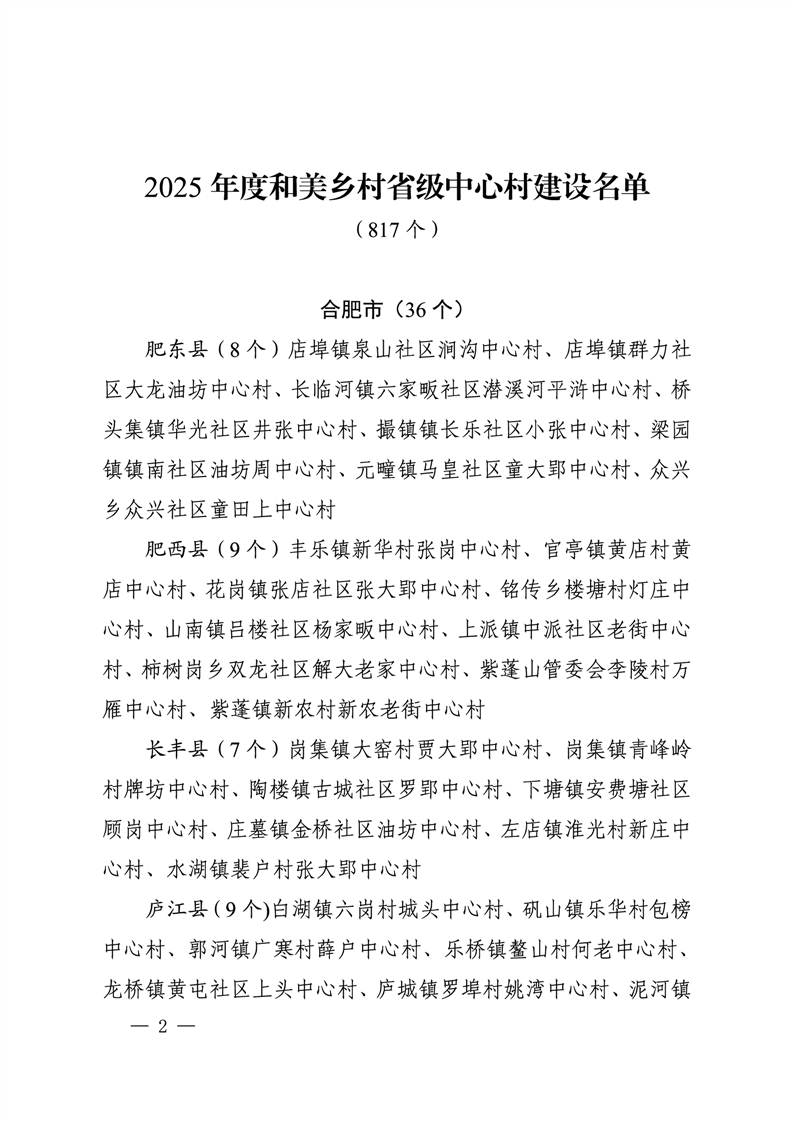 【建设名单】金安区双河镇转发:2025年度和美乡村省级中心村建设名单(含双河镇)