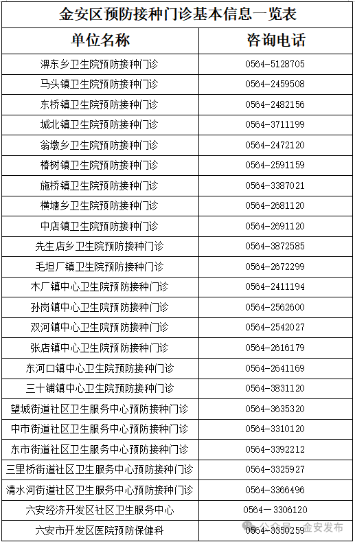 根据安徽省统一安排,金安区将于2026年3-5月组织各预防接种门诊开展含麻疹成分疫苗免费补种工作,具体安排如下: