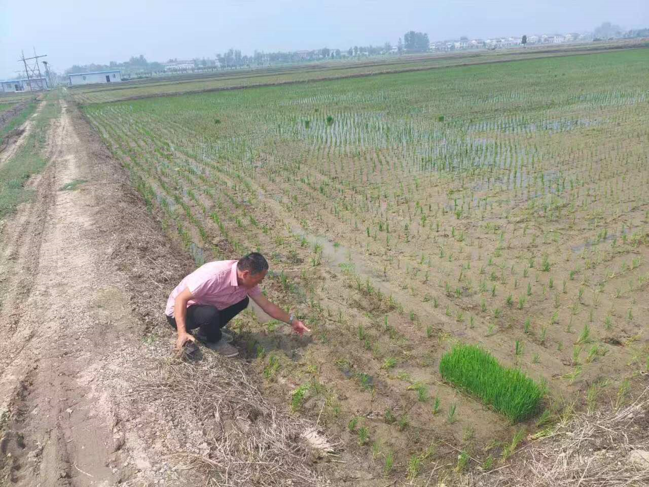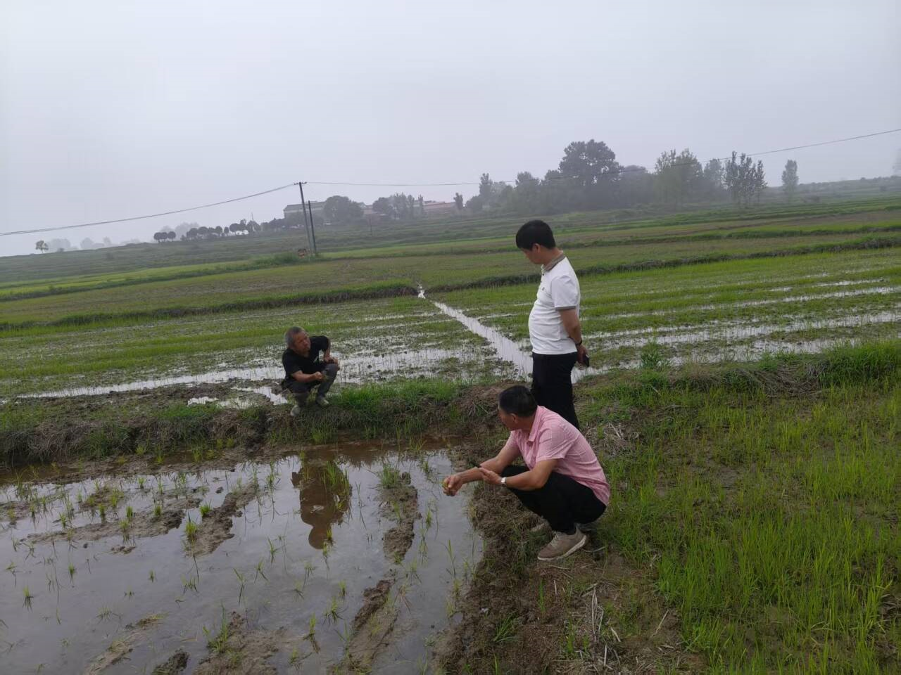 6月13日,农综站技术人员到墩子湾、新塘、高峰等村组查看水稻机插和种植情况。