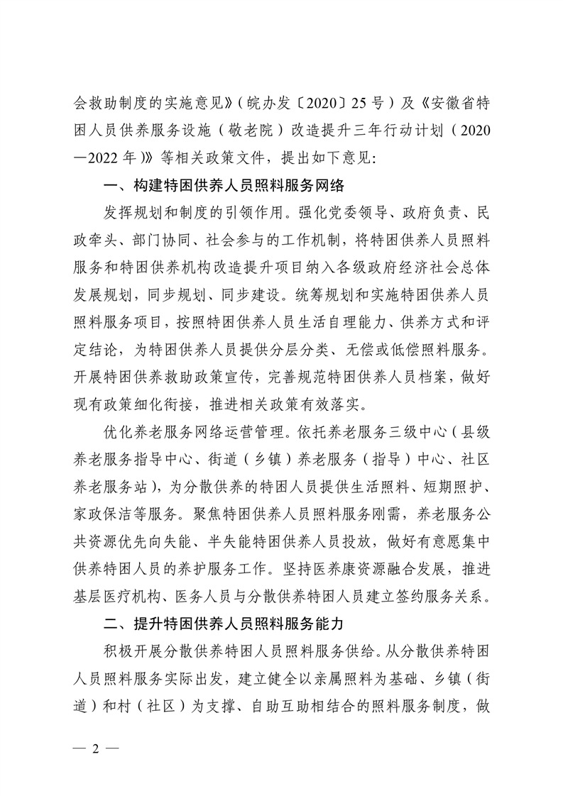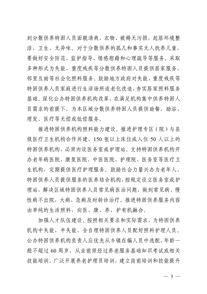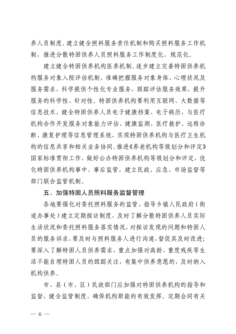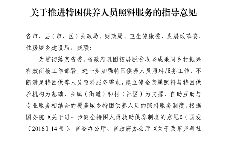金安区特困供养人员照料服务的指导意见