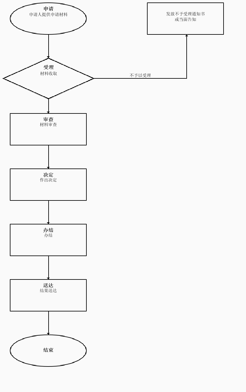 受理:申请人在安徽政务服务网或本机政务服务中心综合窗口提交申请,工作人员对于不符合的退回并告知原由。审查:对提交大材料进行审查。决定:集体讨论并作出决定。办结:工作人员将该事项办结。送达:将结果送达申请人。