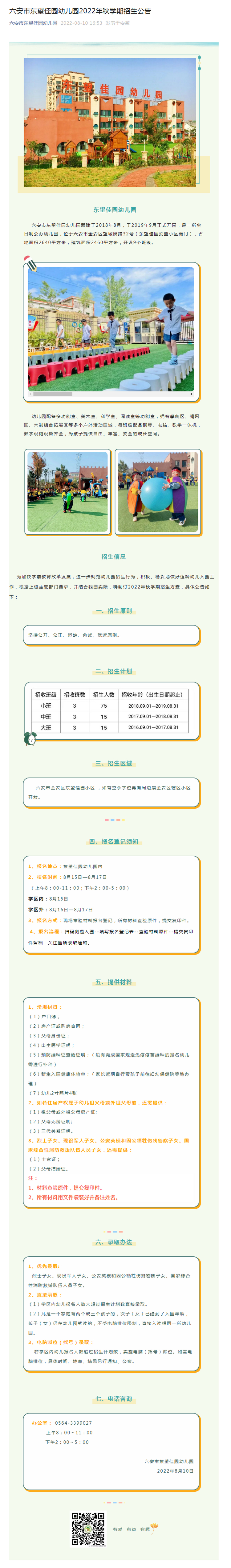 六安市东望佳园幼儿园2022年秋学期招生公告