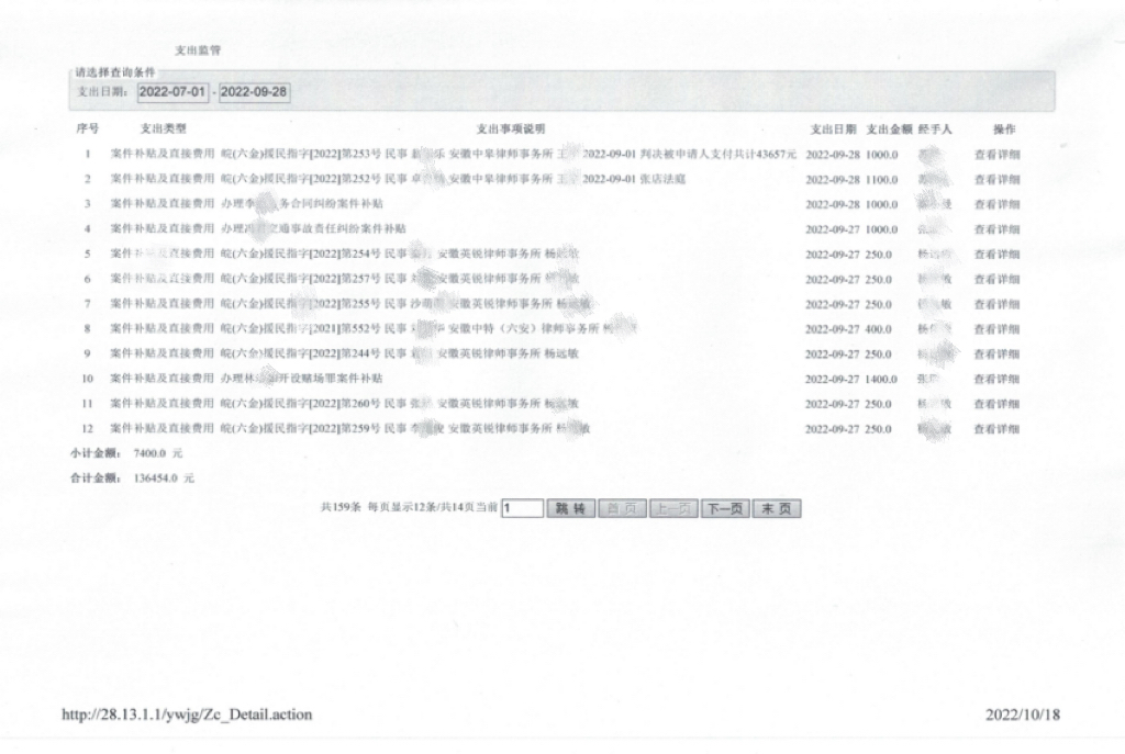 金安区2022年第三季度法律援助办案人员办案补贴发放结果