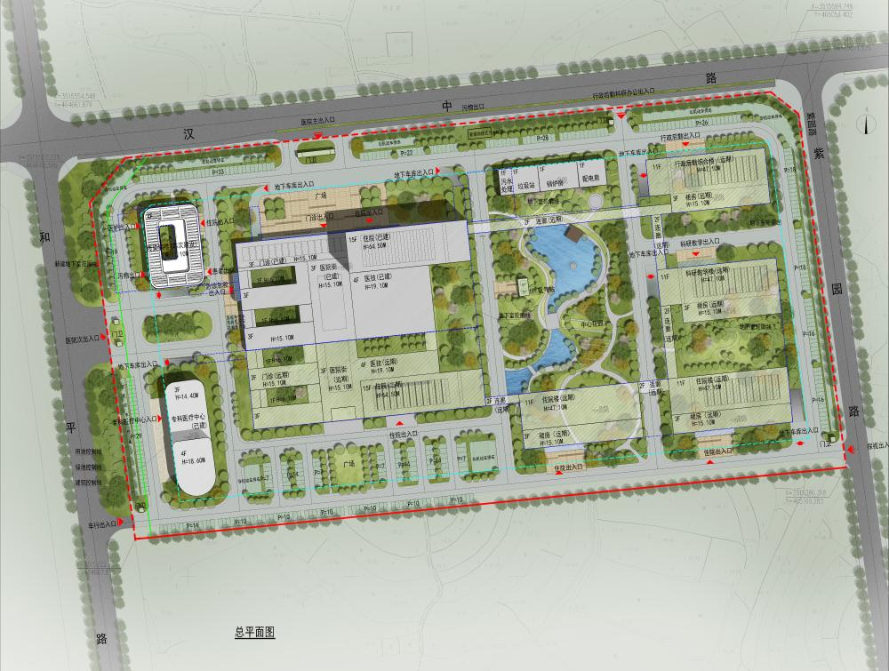 该项目位于汉中路以南、和平路以东,金安区人民医院院内。为进一步完善区域内综合医疗资源,提升应急诊疗救治水平,金安区卫健委申请在该地块内新建传染病综合楼一栋。具体调整内容为:
