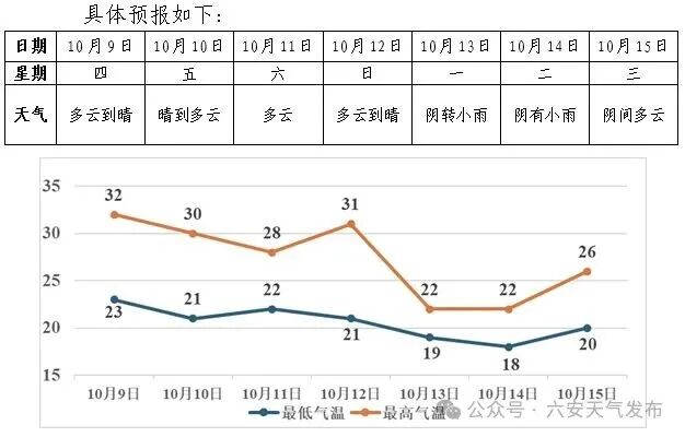 未来一周我市以多云到晴天气为主;其中受冷空气影响,13-14日有一次弱降水过程,全市大部分地区有小雨。12日前我市气温变化不大,最低气温21~23℃,最高气温28~32℃;受冷空气和降水共同影响,13日起气温明显下降,最高气温降至22℃,请注意适时添衣。