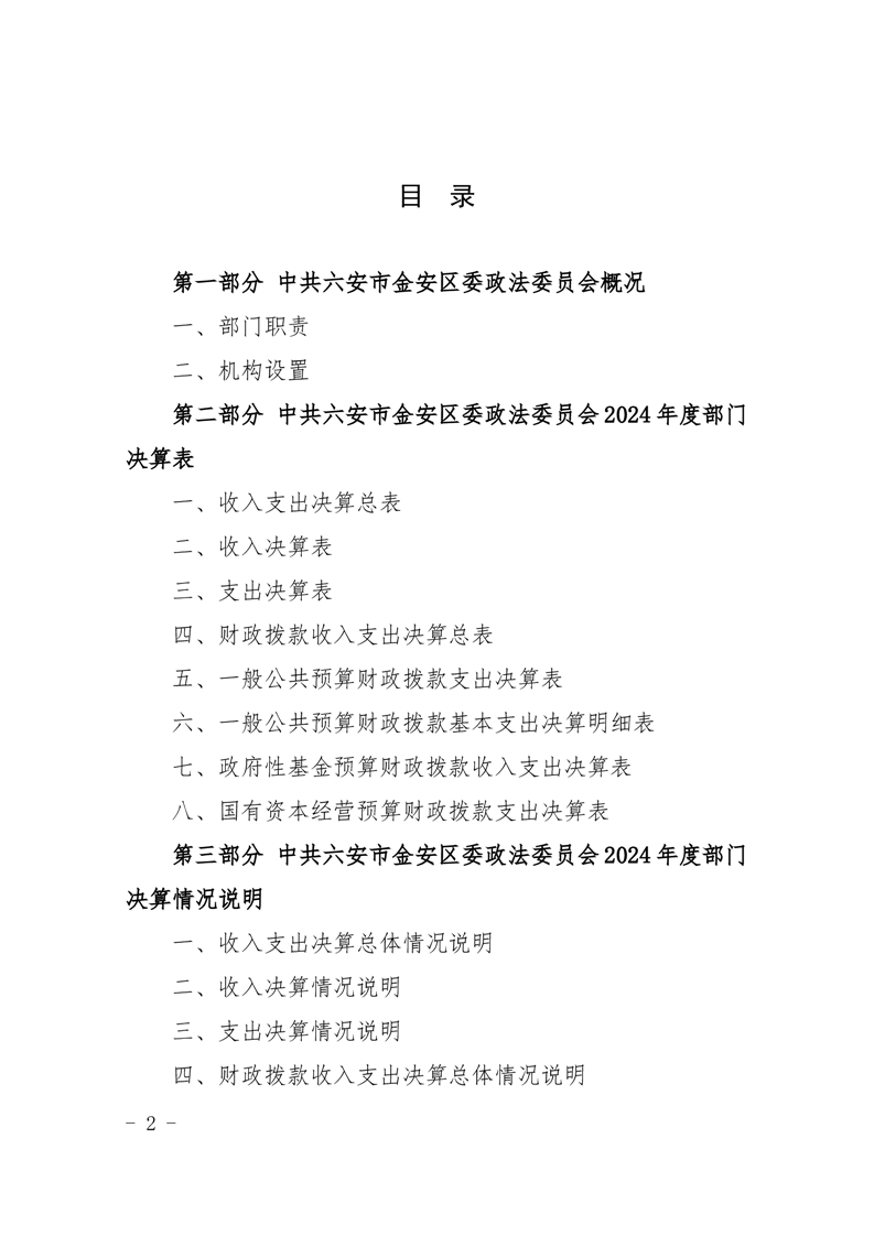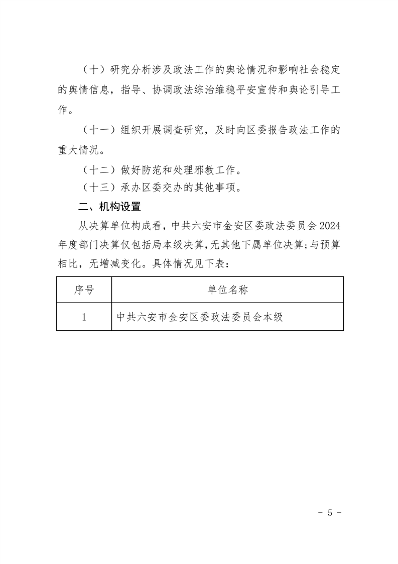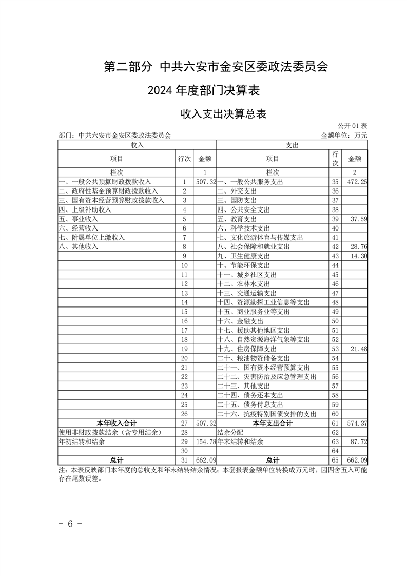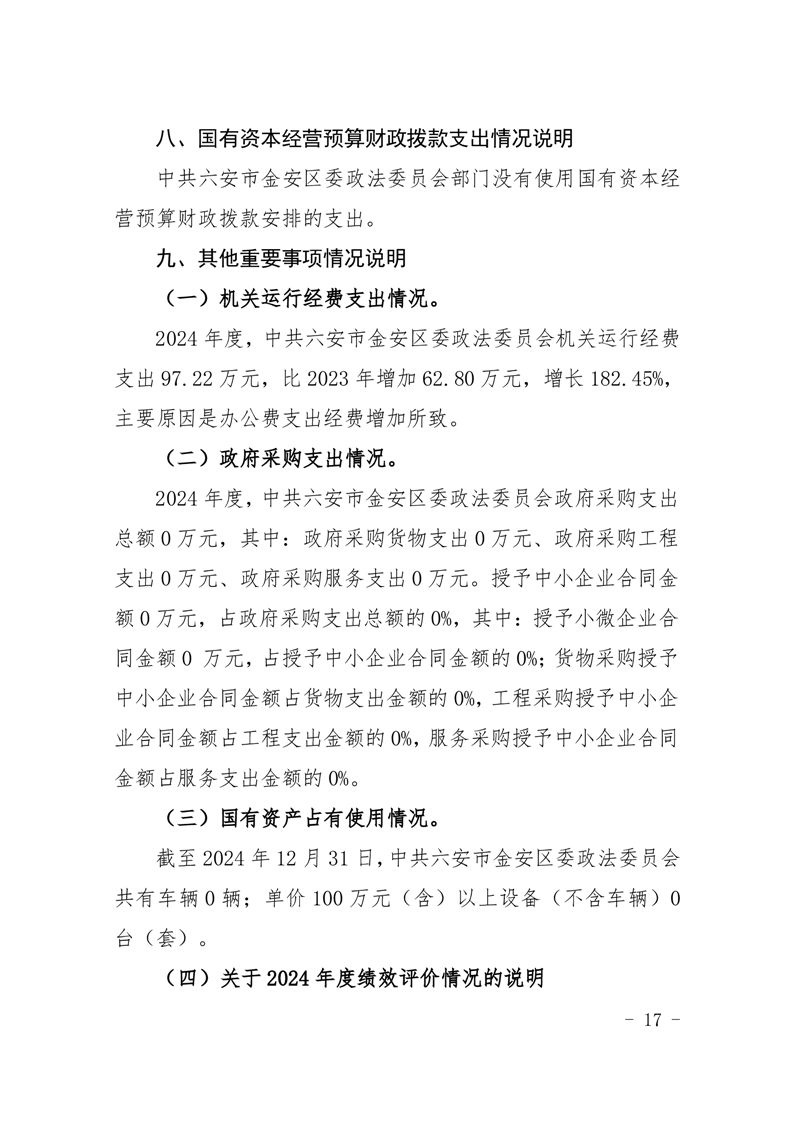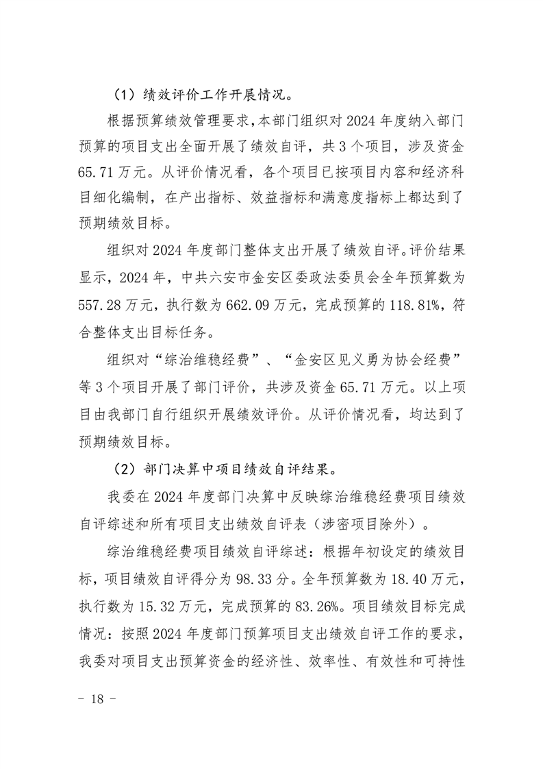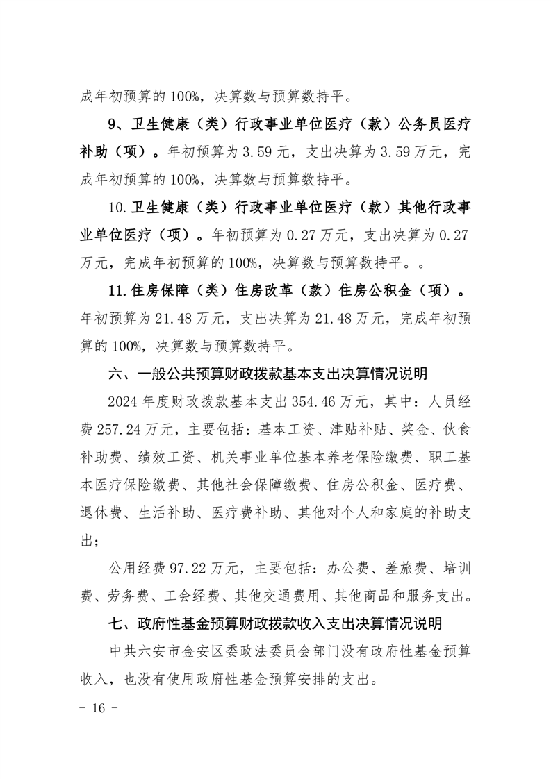 中共六安市金安区委政法委员会2024年度部门决算公开