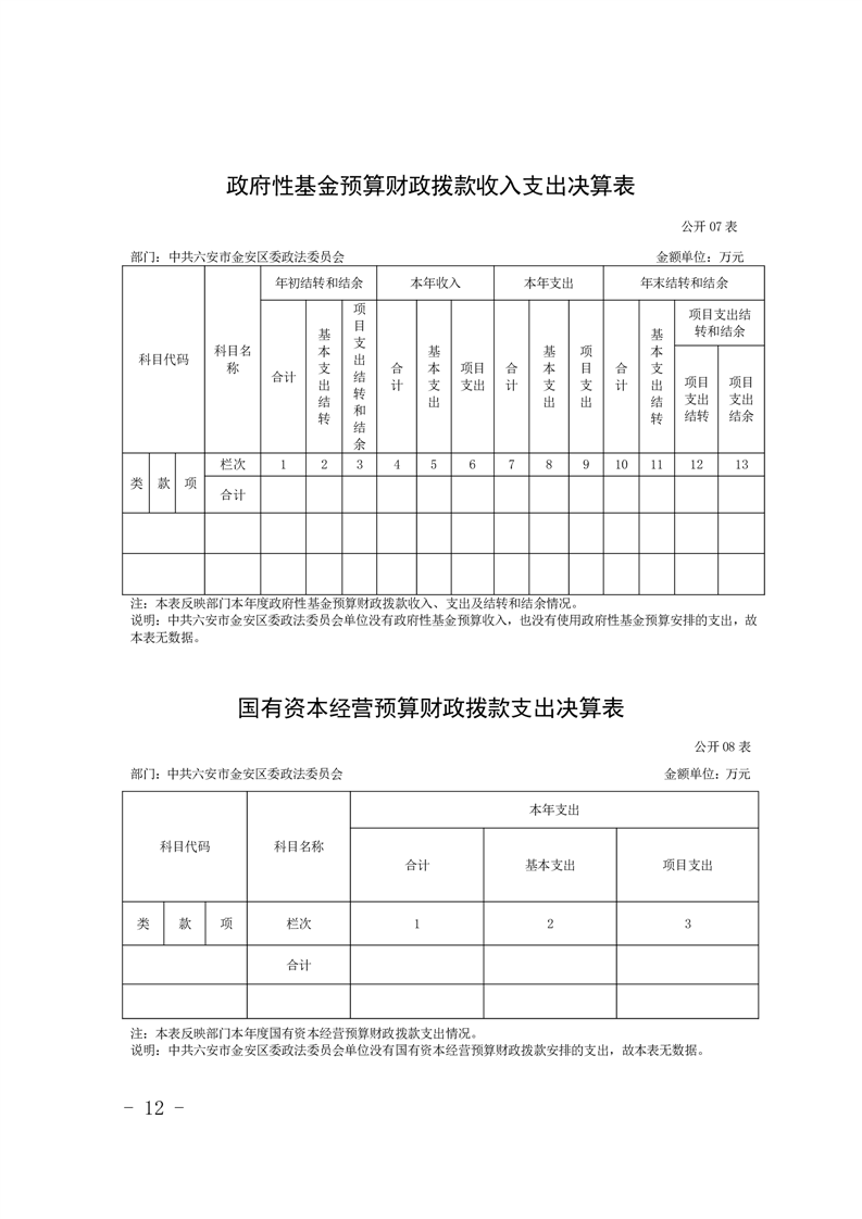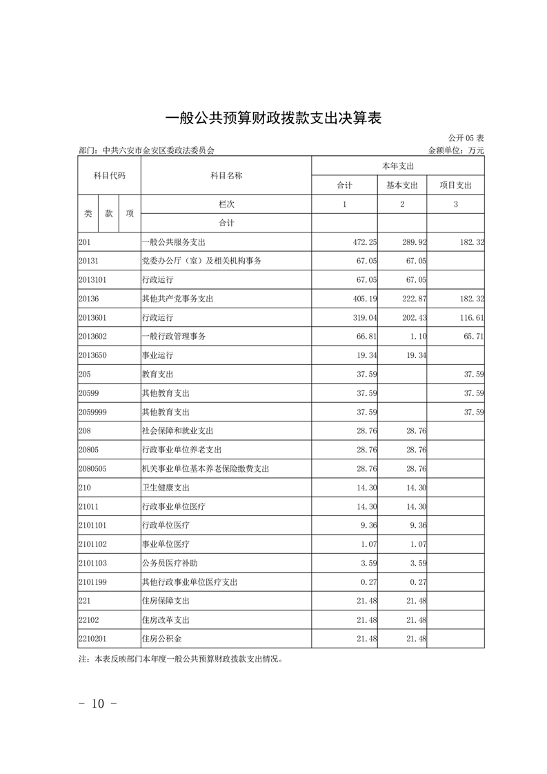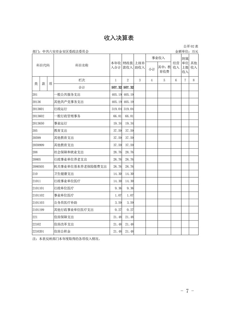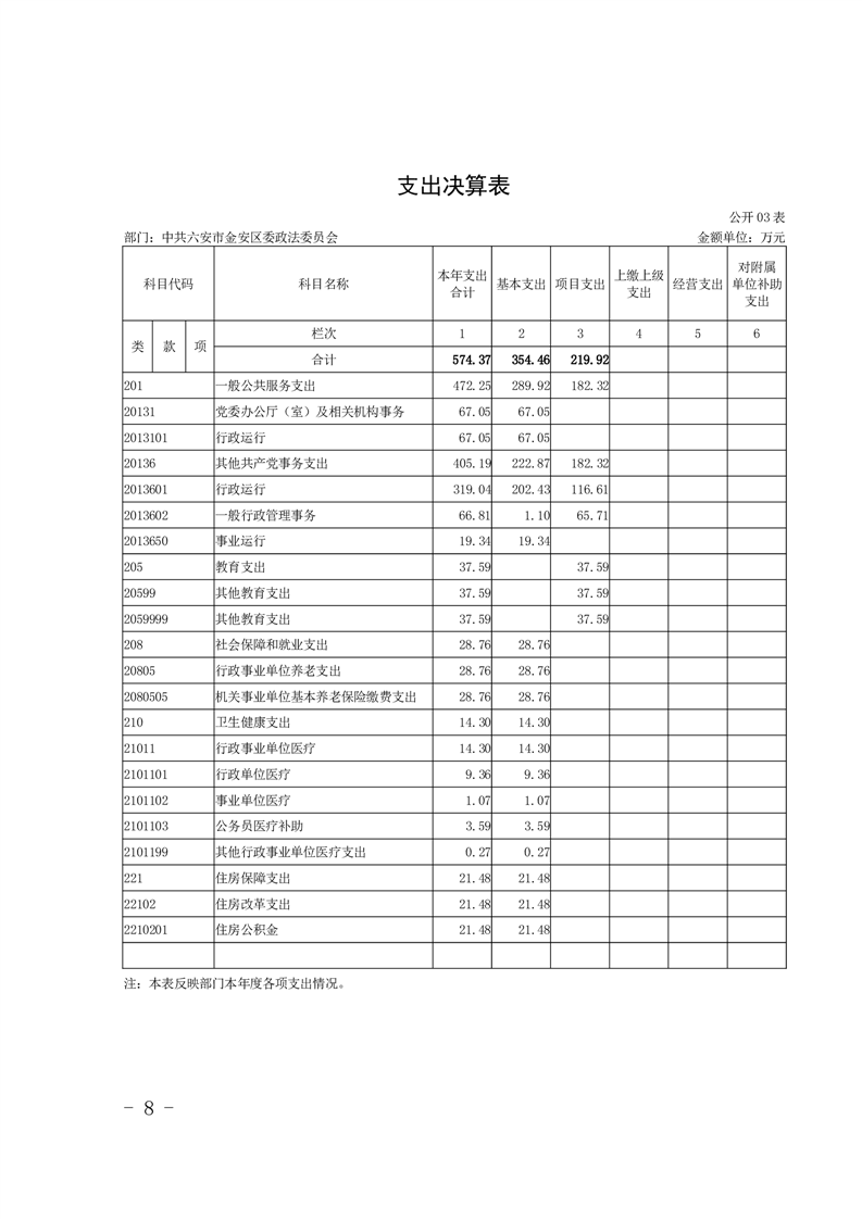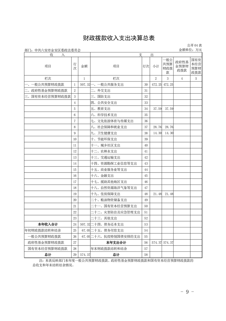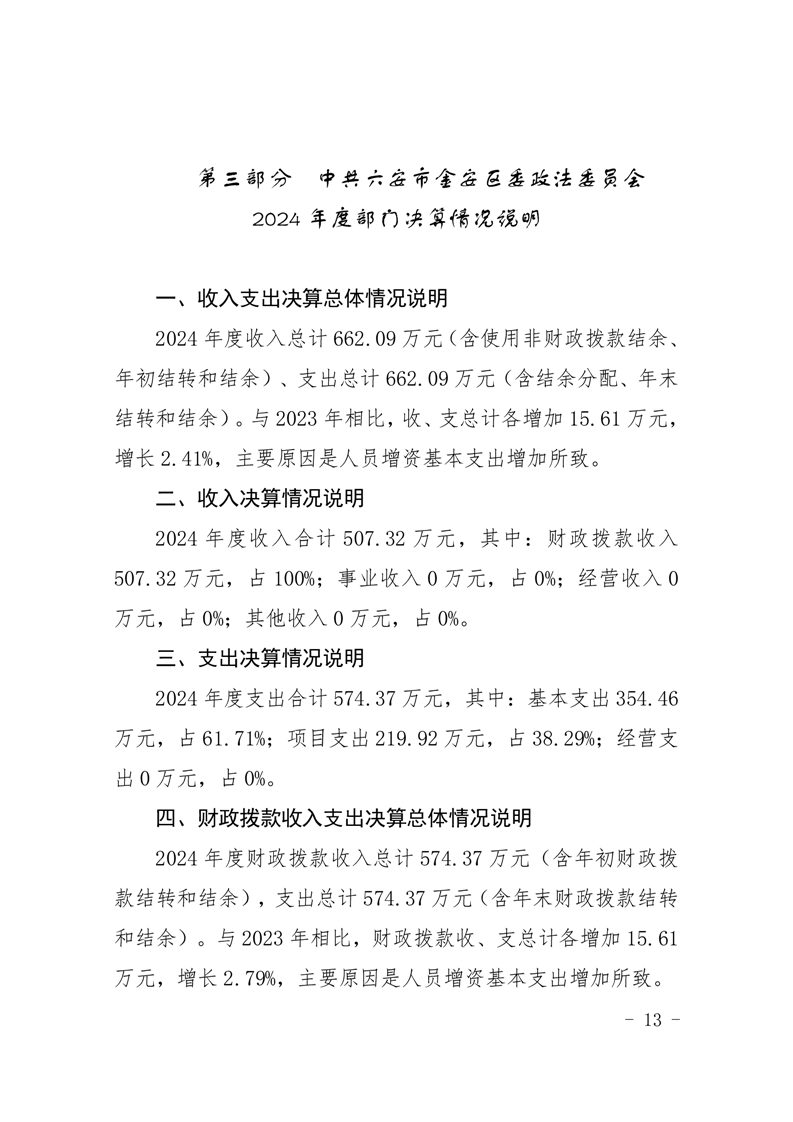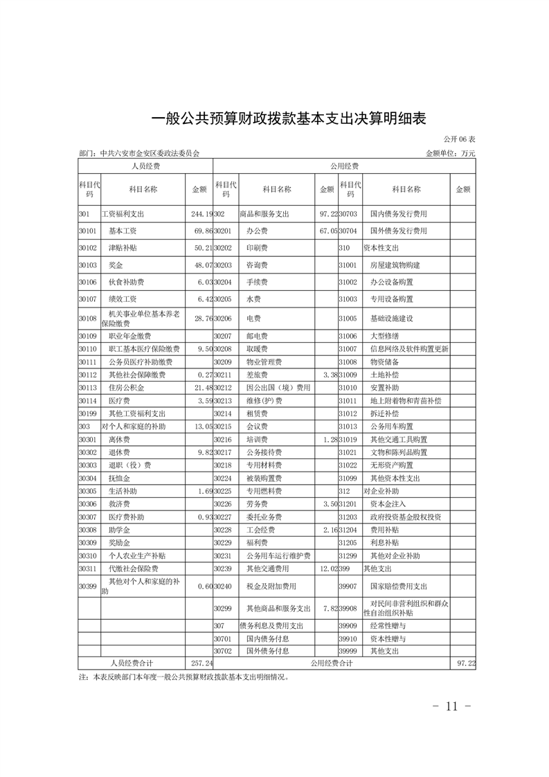 中共六安市金安区委政法委员会2024年度部门决算公开