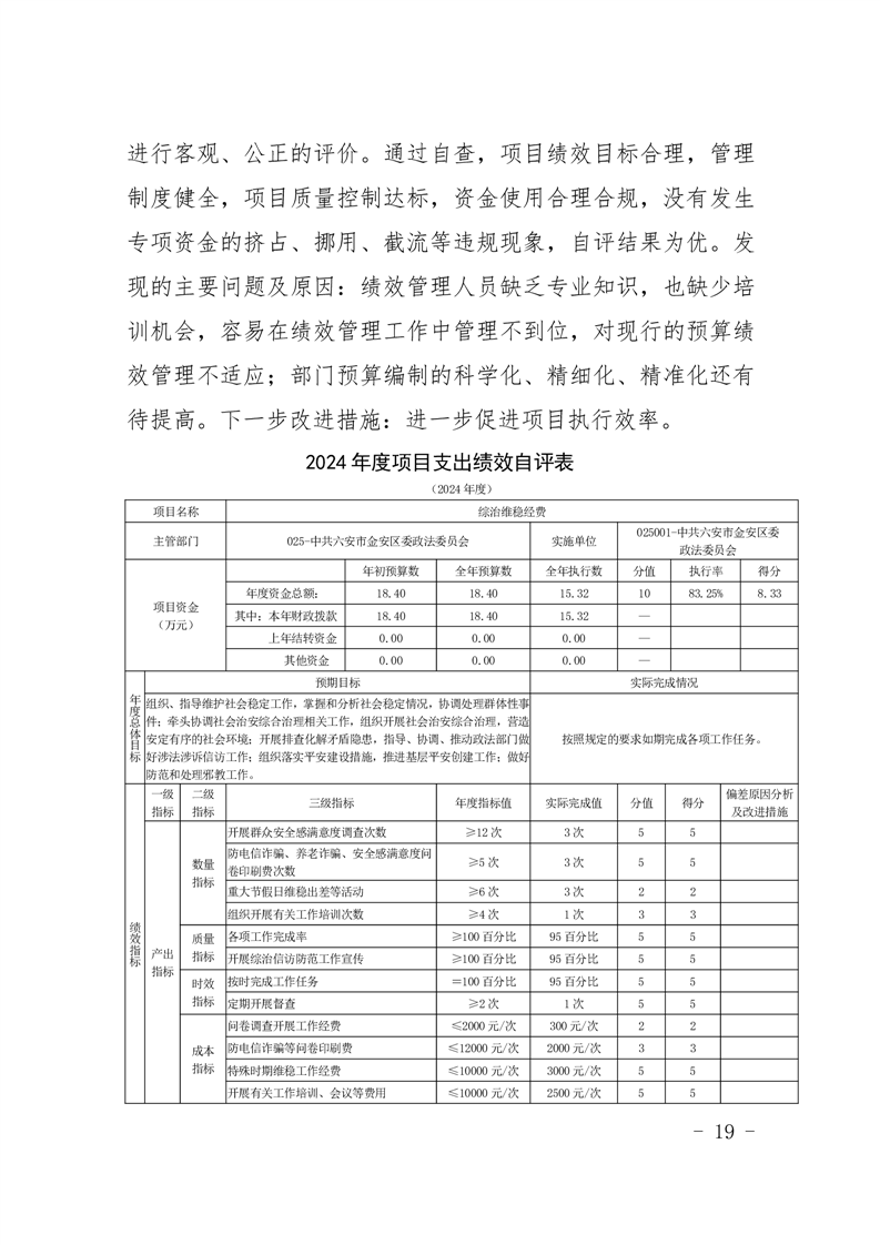 附件2:中共六安市金安区委政法委员会2024年度综治维稳经费项目绩效自评报告.pdf